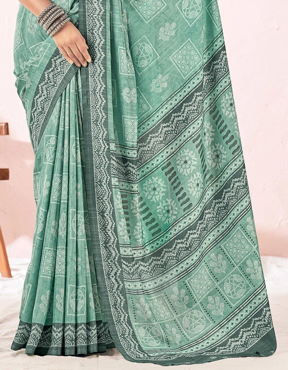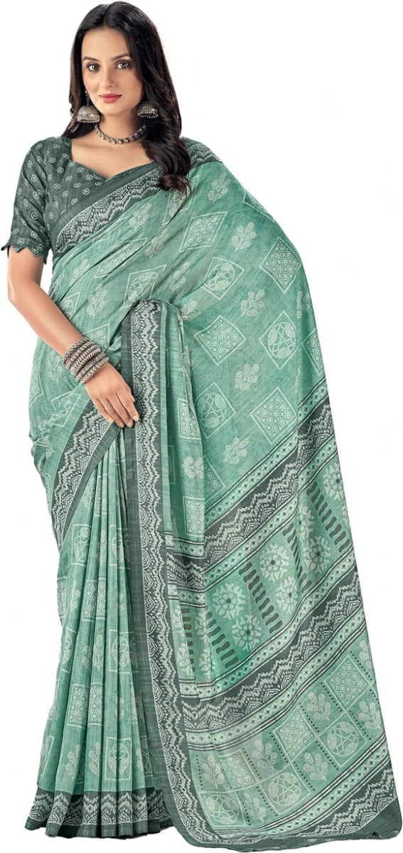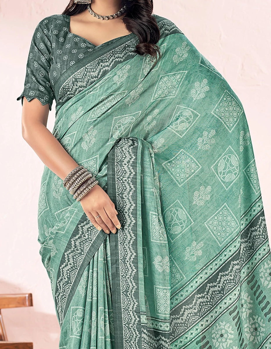 Blue Printed Cotton Silk Party & Festive Saree (Unstitched)