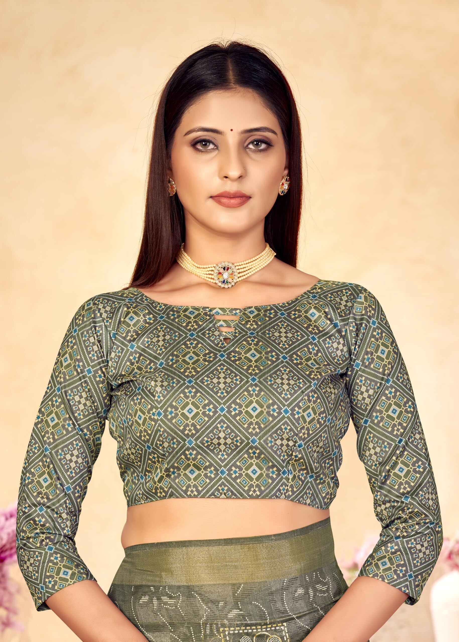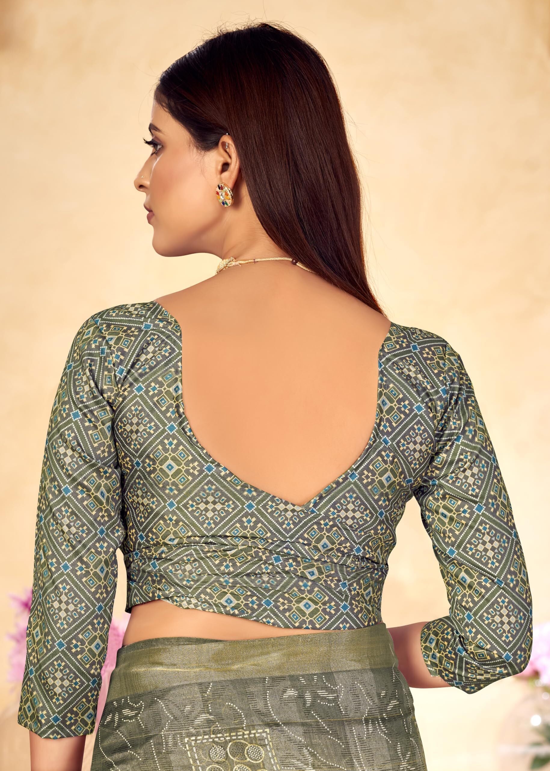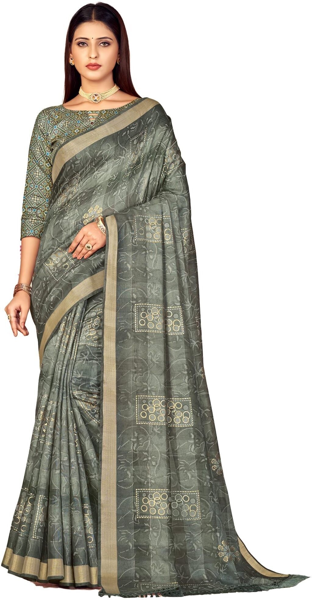 Checkered, Color Block Bollywood Chanderi, Cotton Silk Saree (Grey)