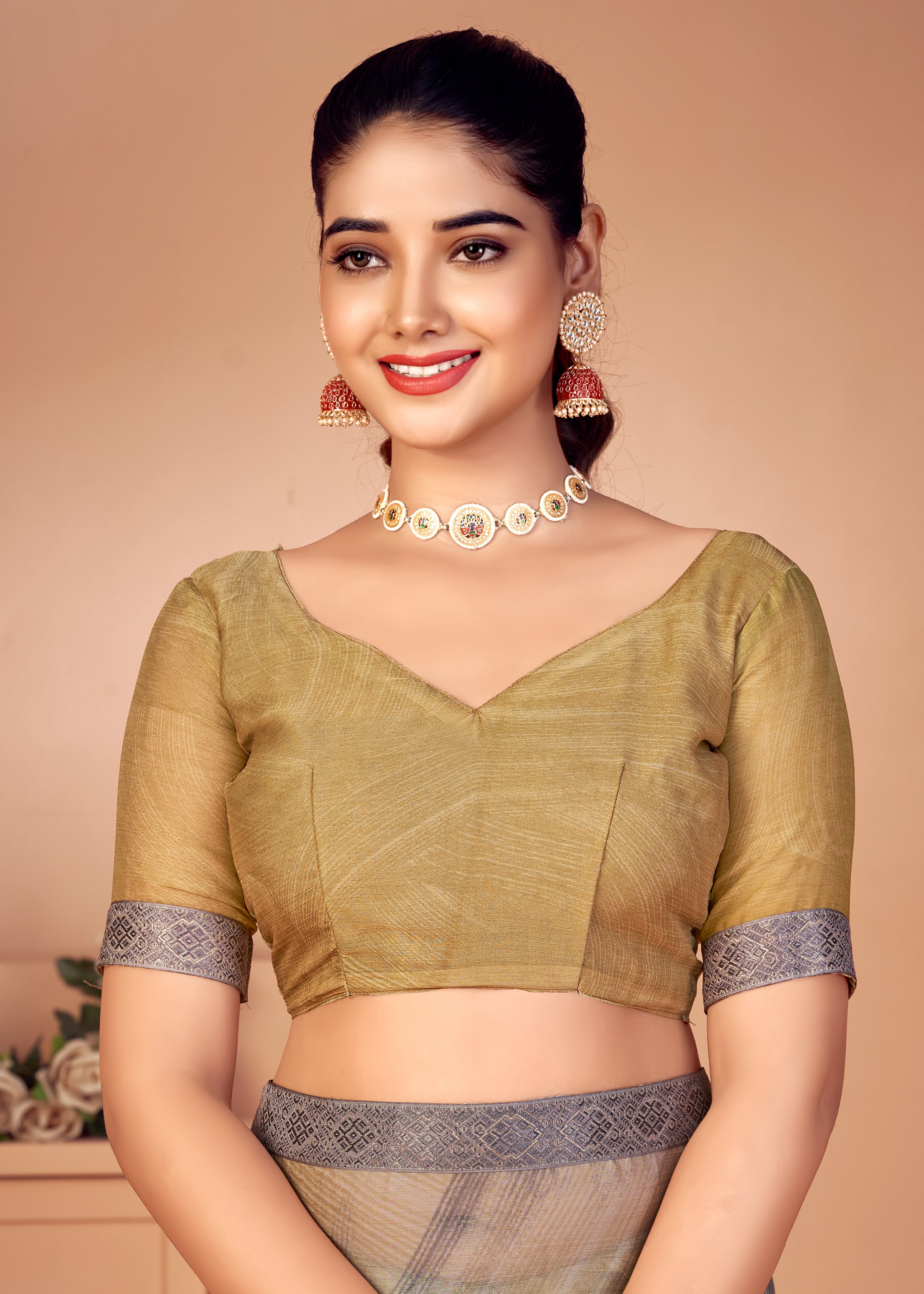 Fancy Multicolored printed, Chiffon saree with attached banarasi border (Gold)