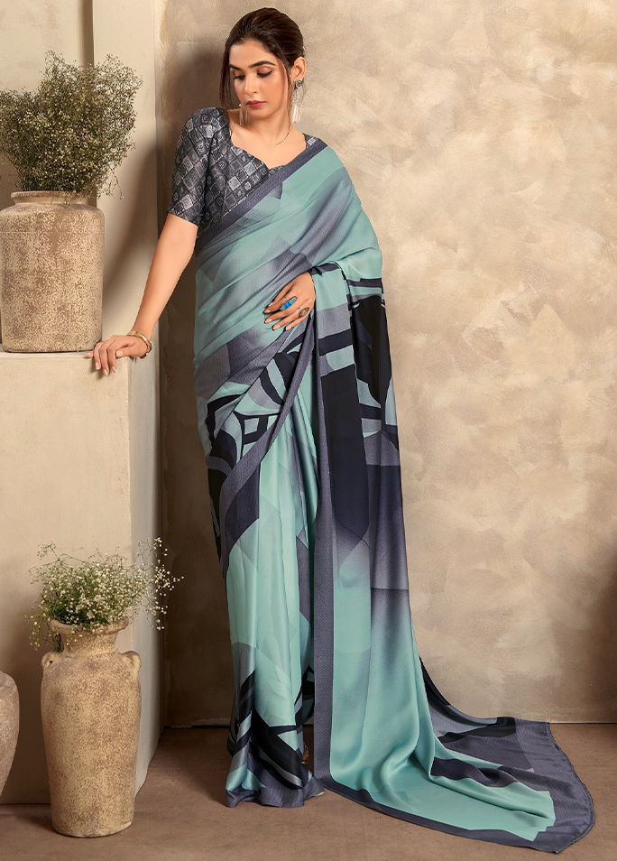 Fancy Print,Crape Silk Saree (Baby Blue)
