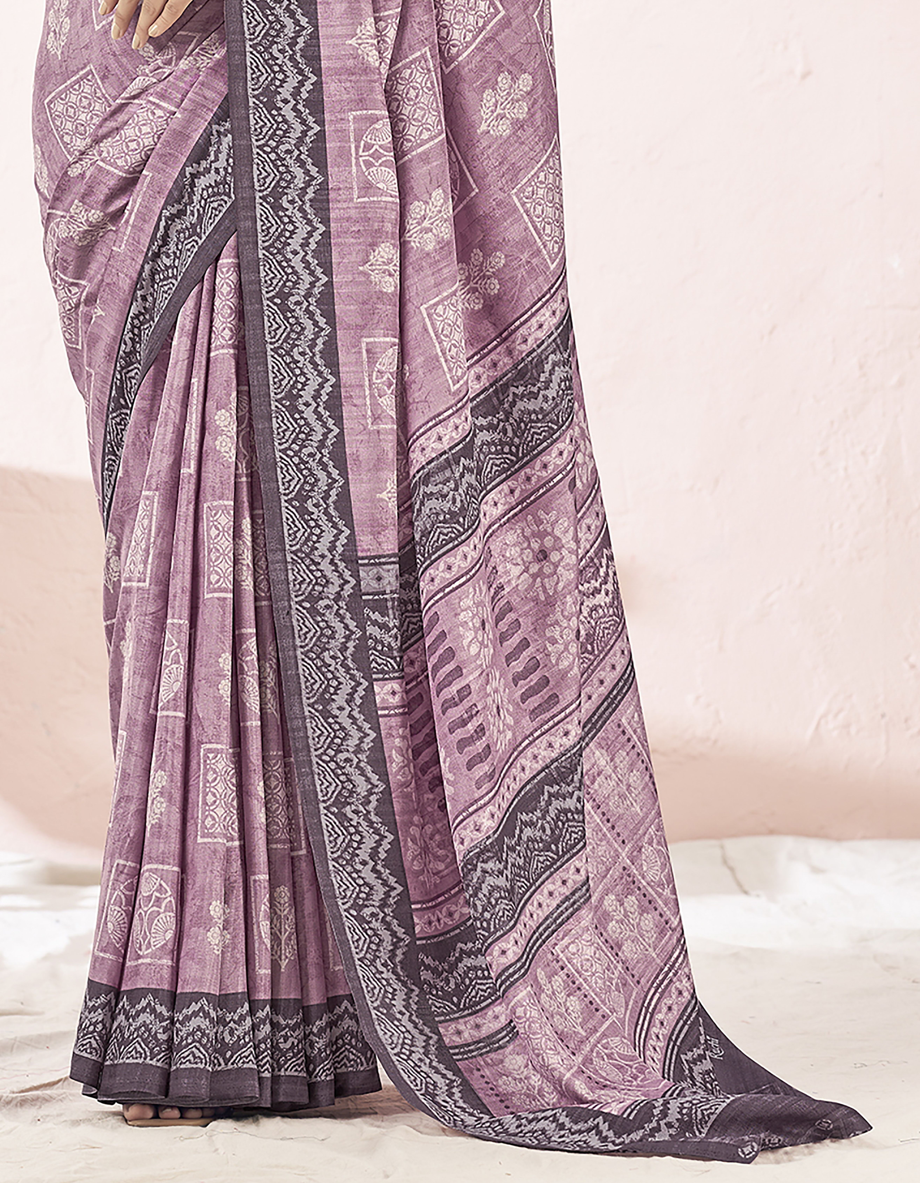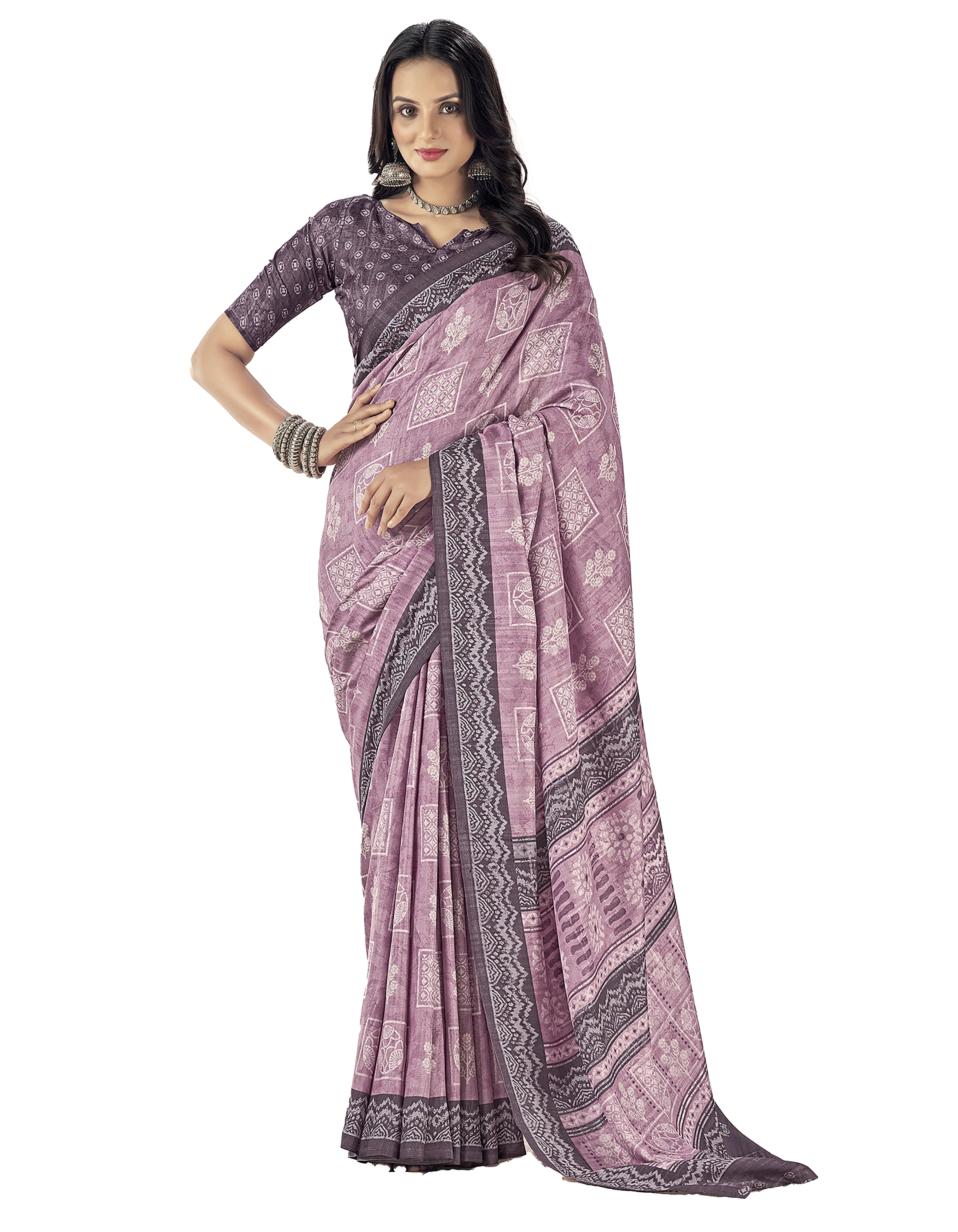 Fancy Batik inspired Tussar printed exclusive sarees by Indoniq Fashion is here to make you look gorgeous. This saree includes contrast printed border with contrast printed Blouse piece running with the saree with a fancy printed pallu. A must have saree for soft & smooth Tussar lovers out there!