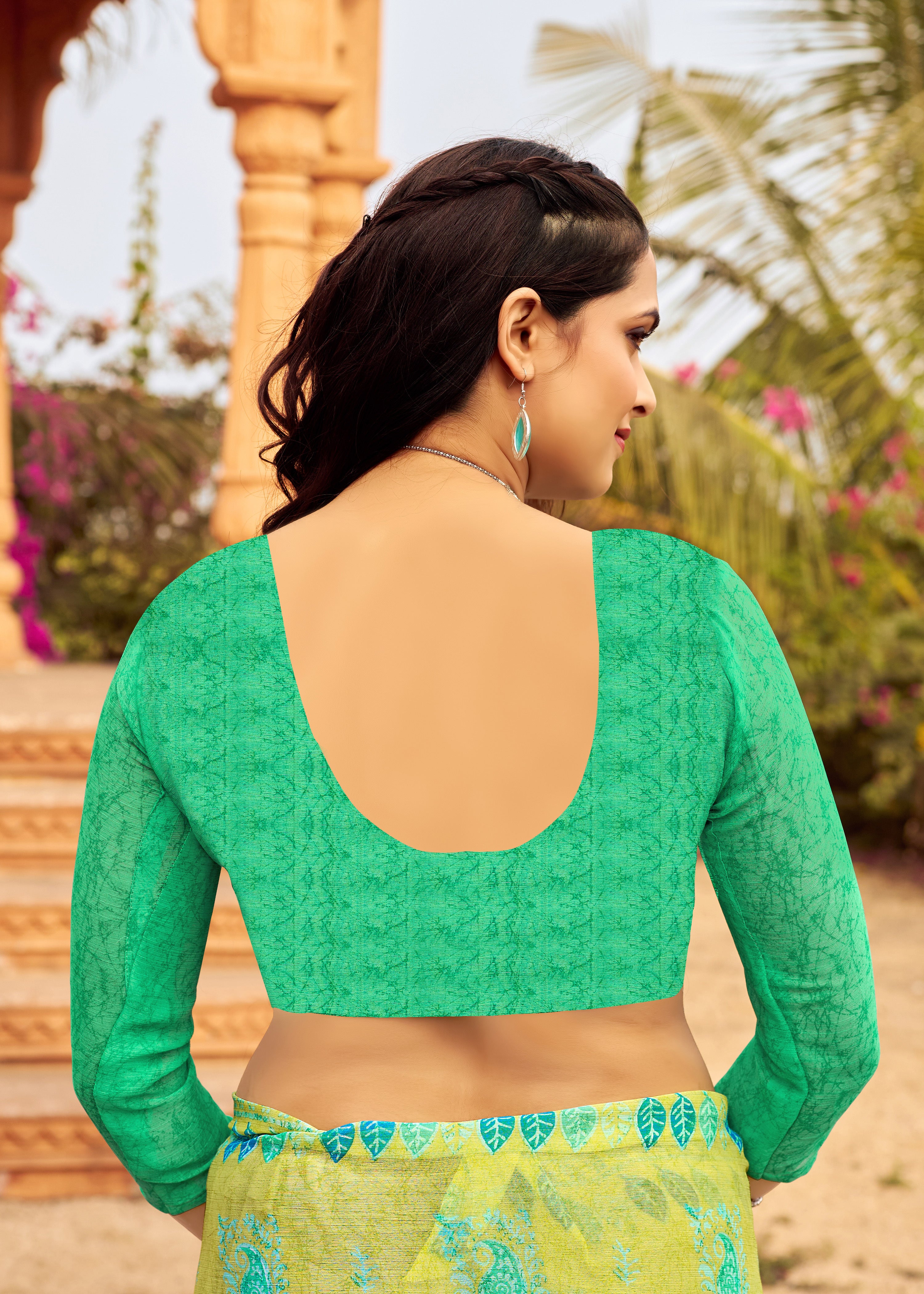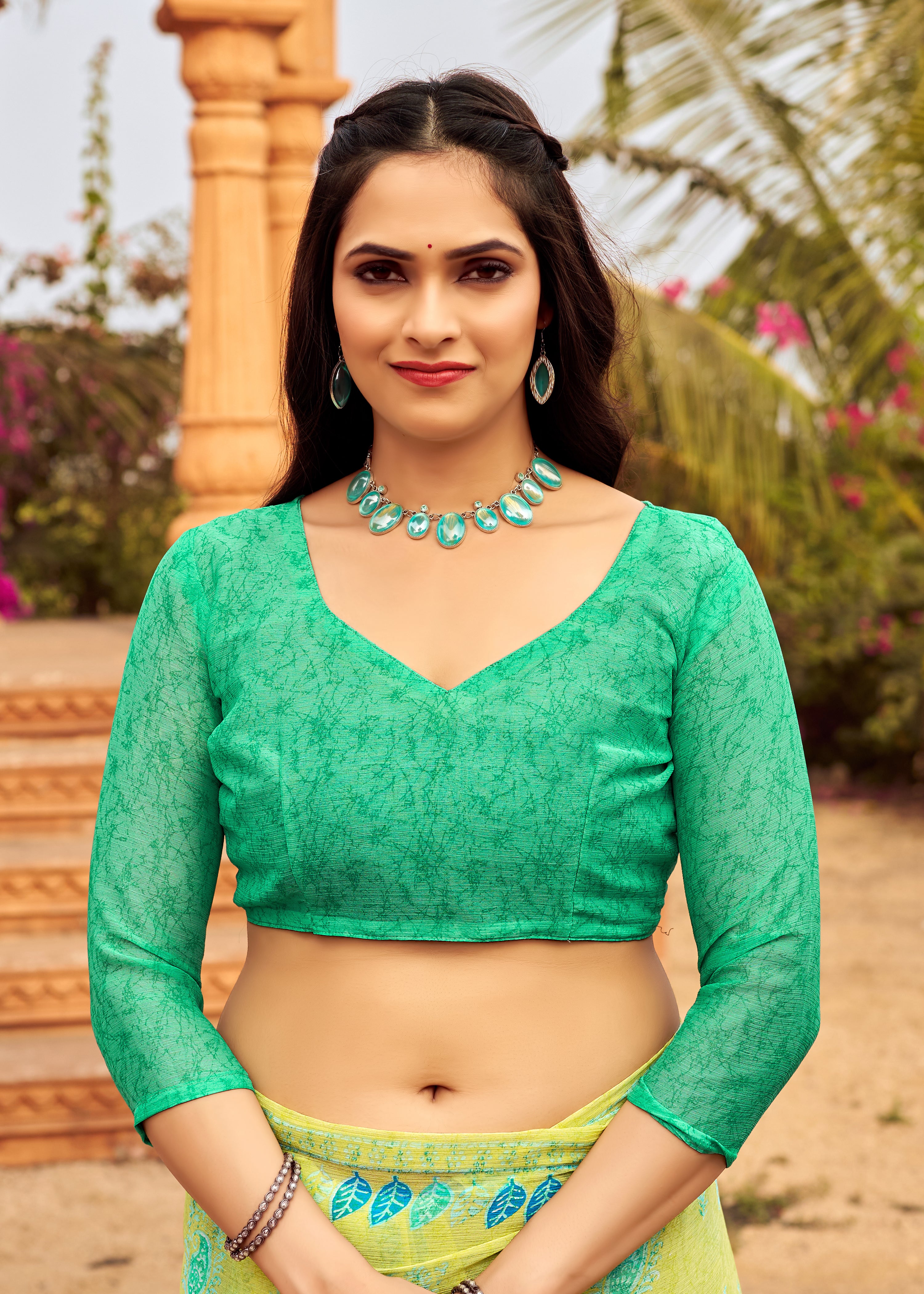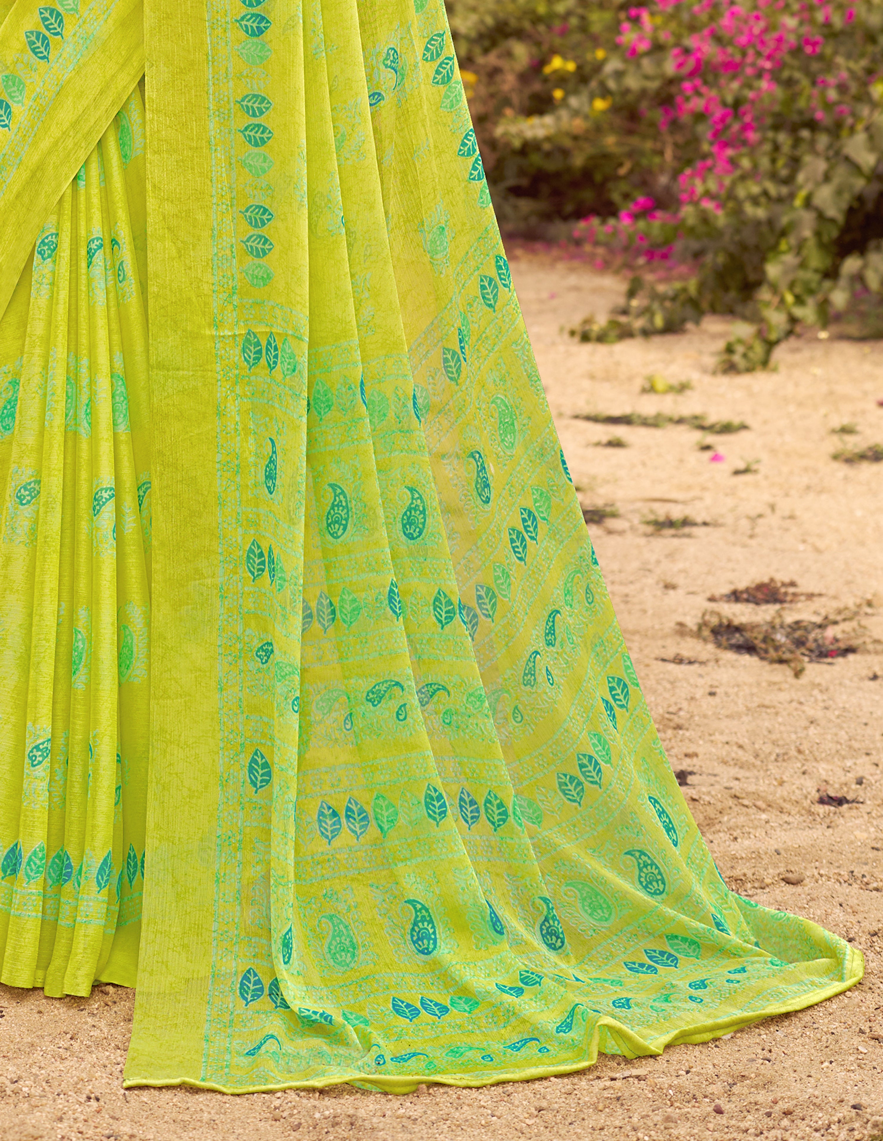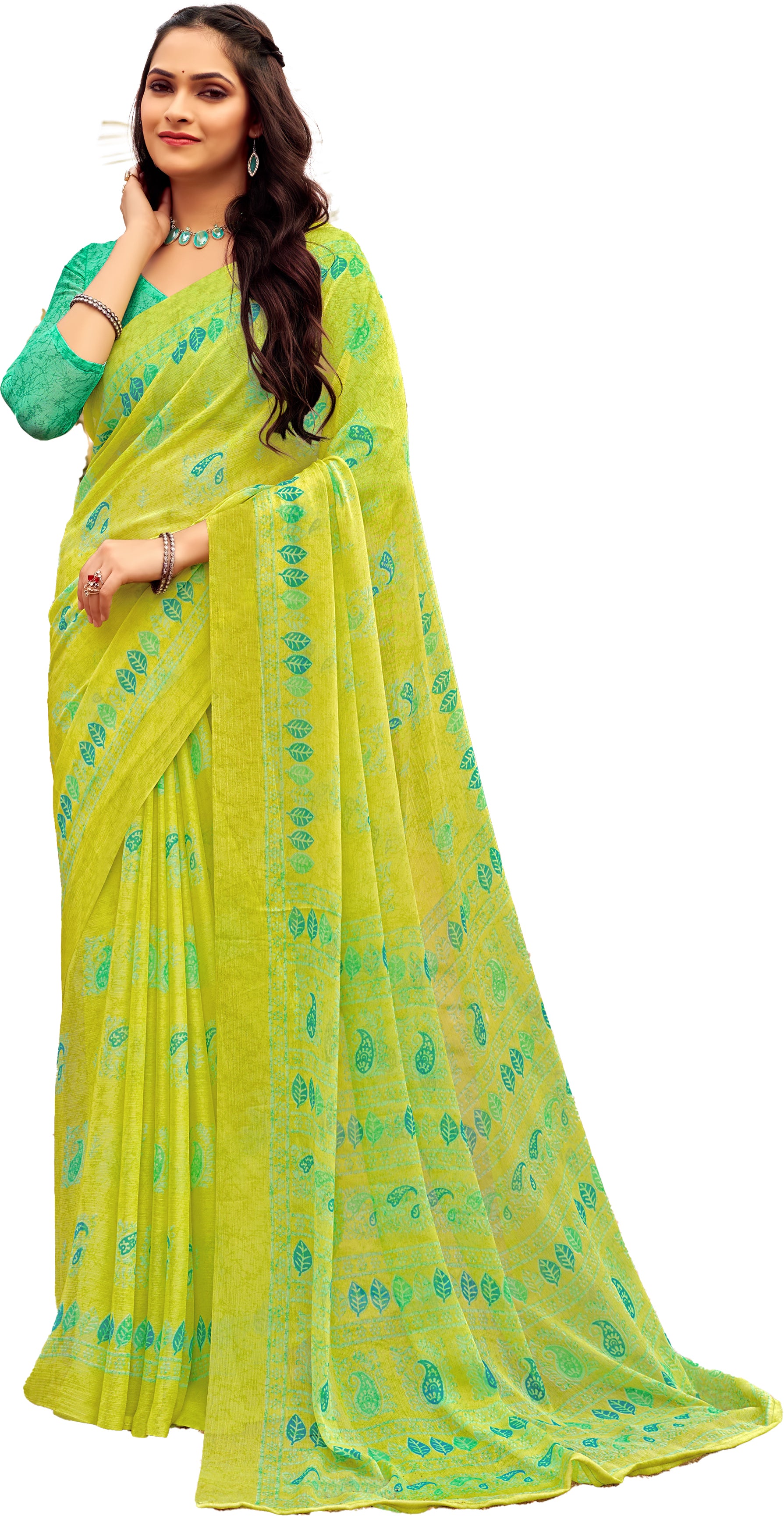 Floral Print Daily Wear Chiffon Saree (Yellow & Green)