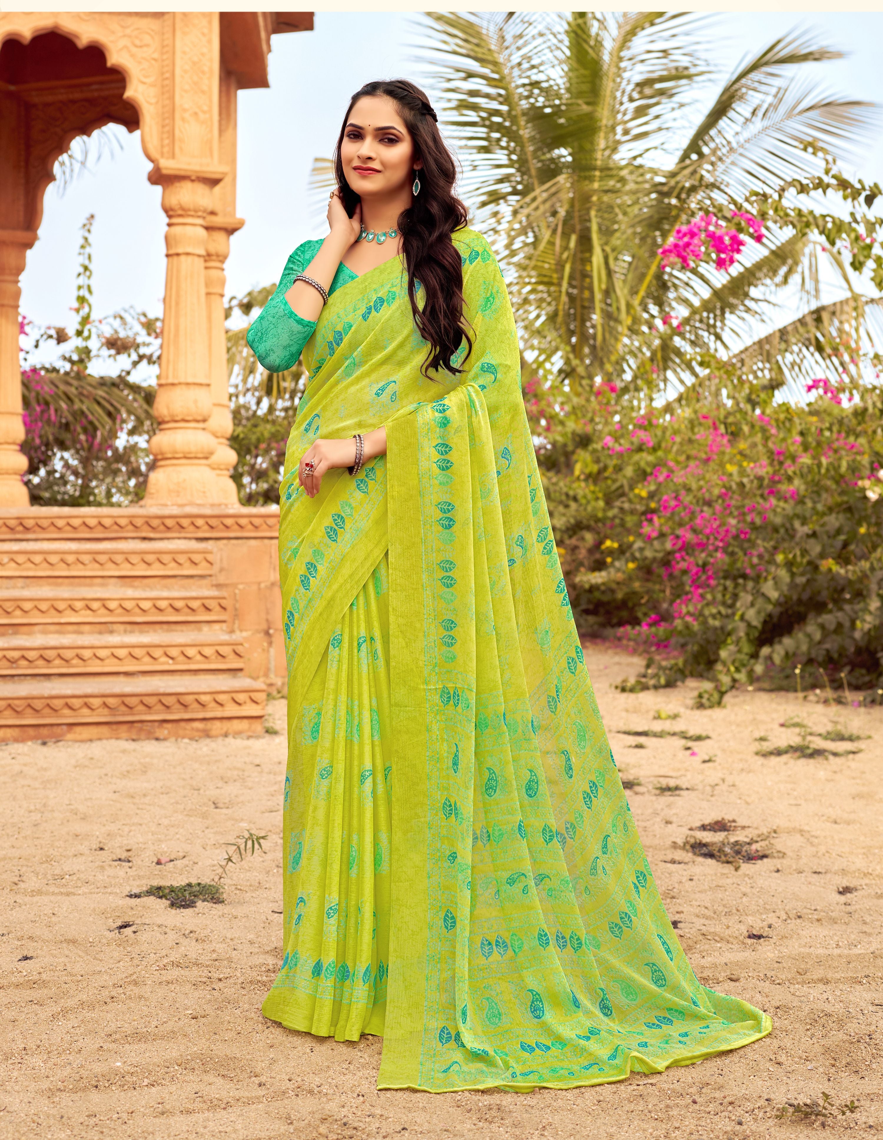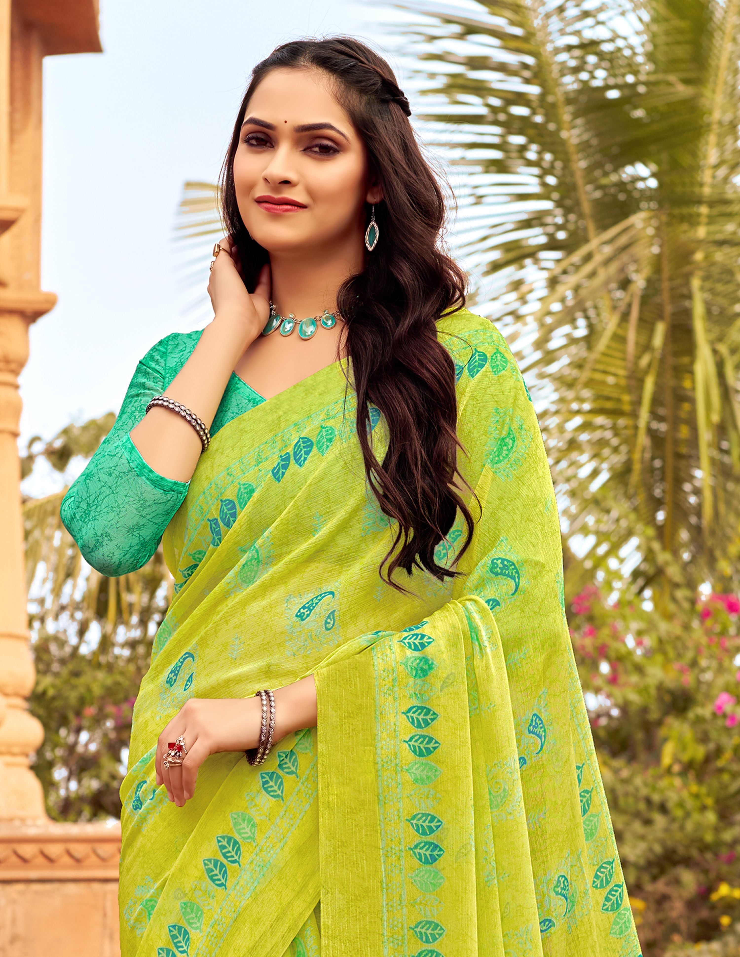 Floral Print Daily Wear Chiffon Saree (Orange)