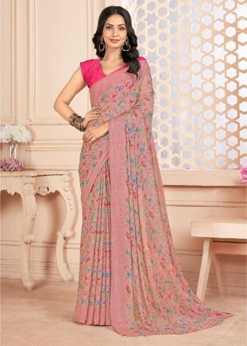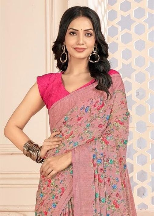 Floral Print, Graphic Print Kalamkari Chiffon, Georgette Saree (Brown Camel)