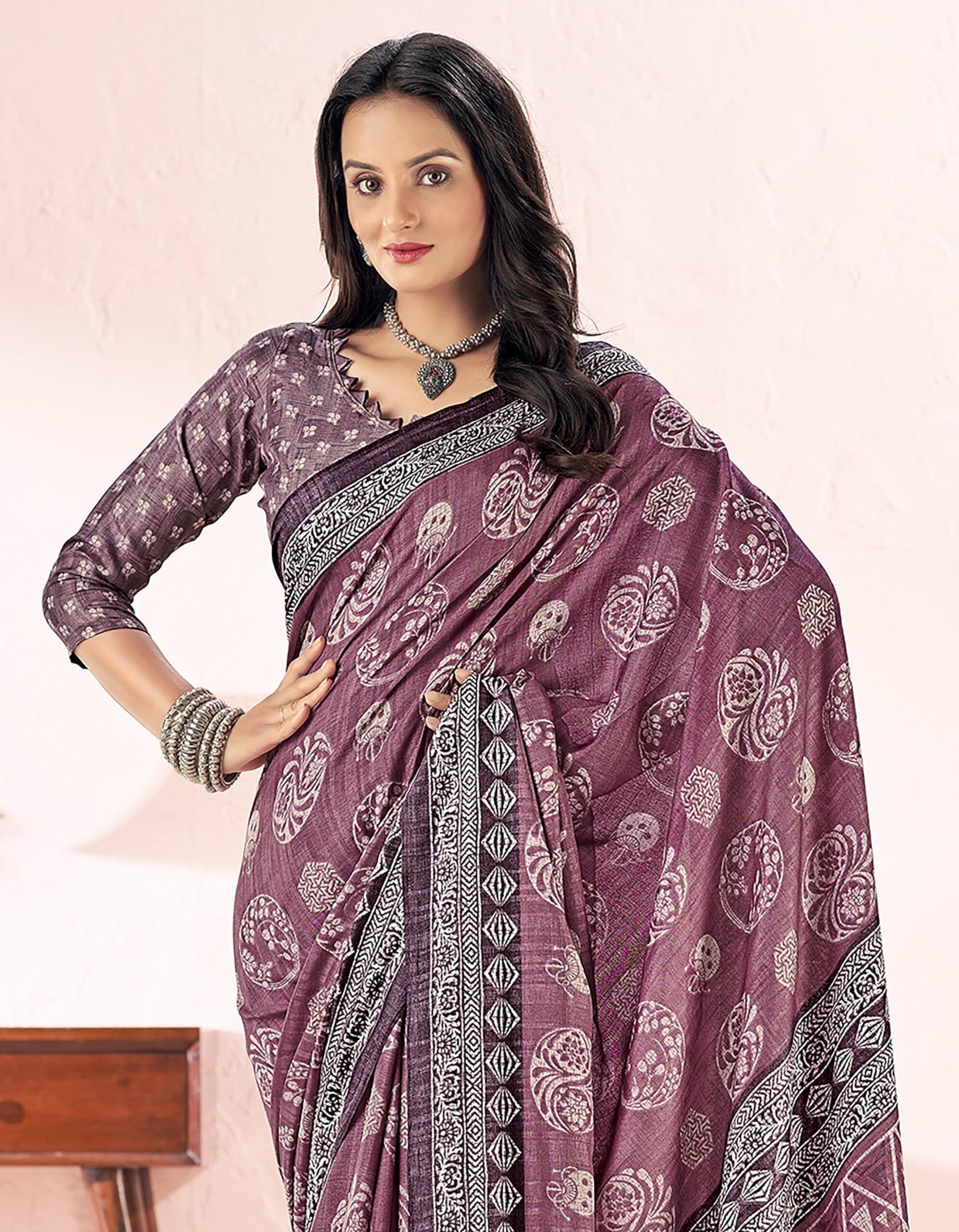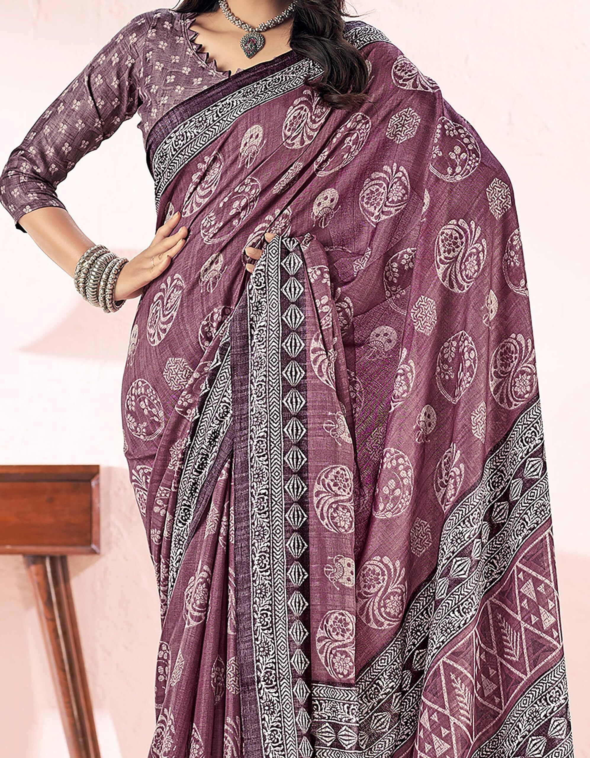 Floral Print, Graphic Print Kalamkari Chiffon, Georgette Saree (Deep Plum)