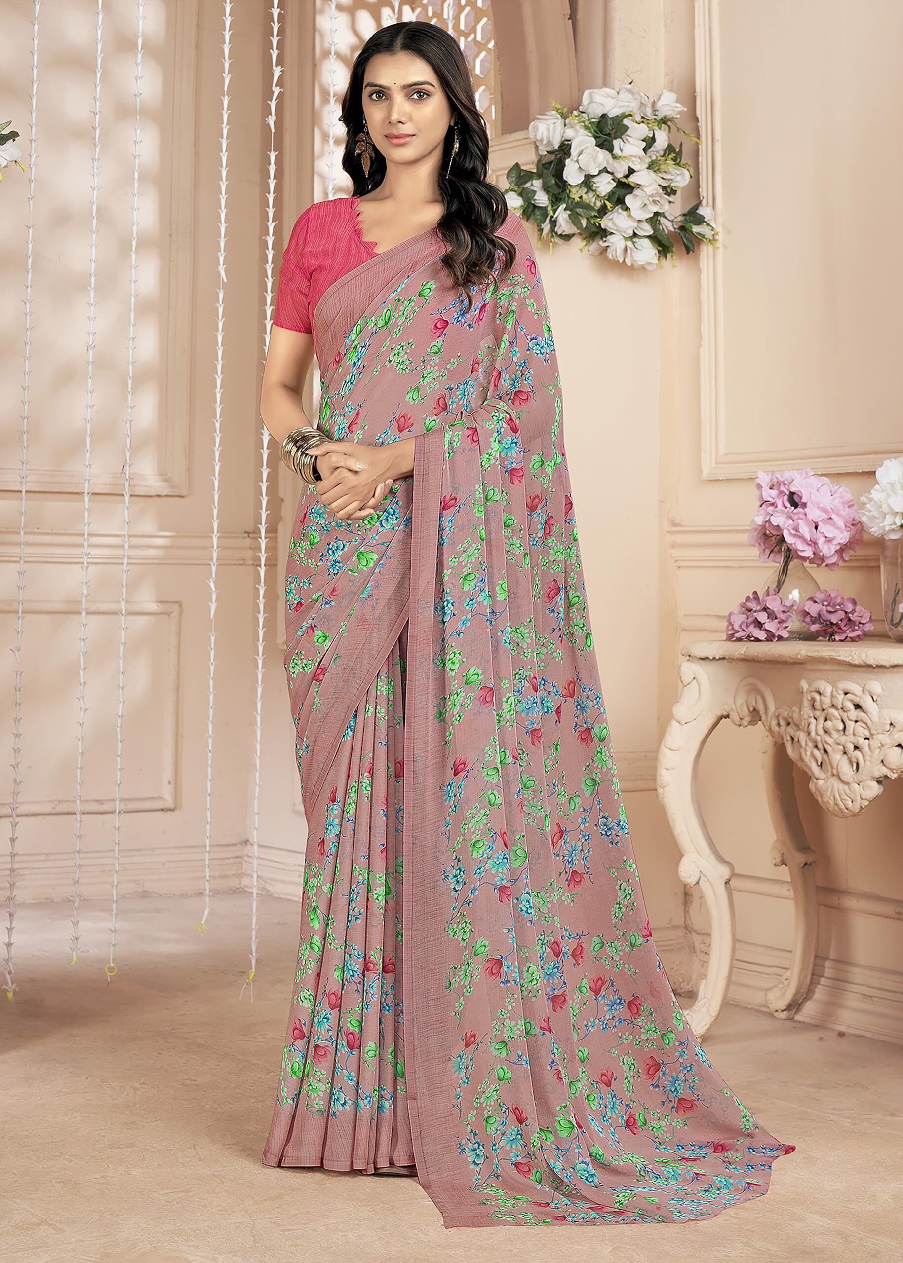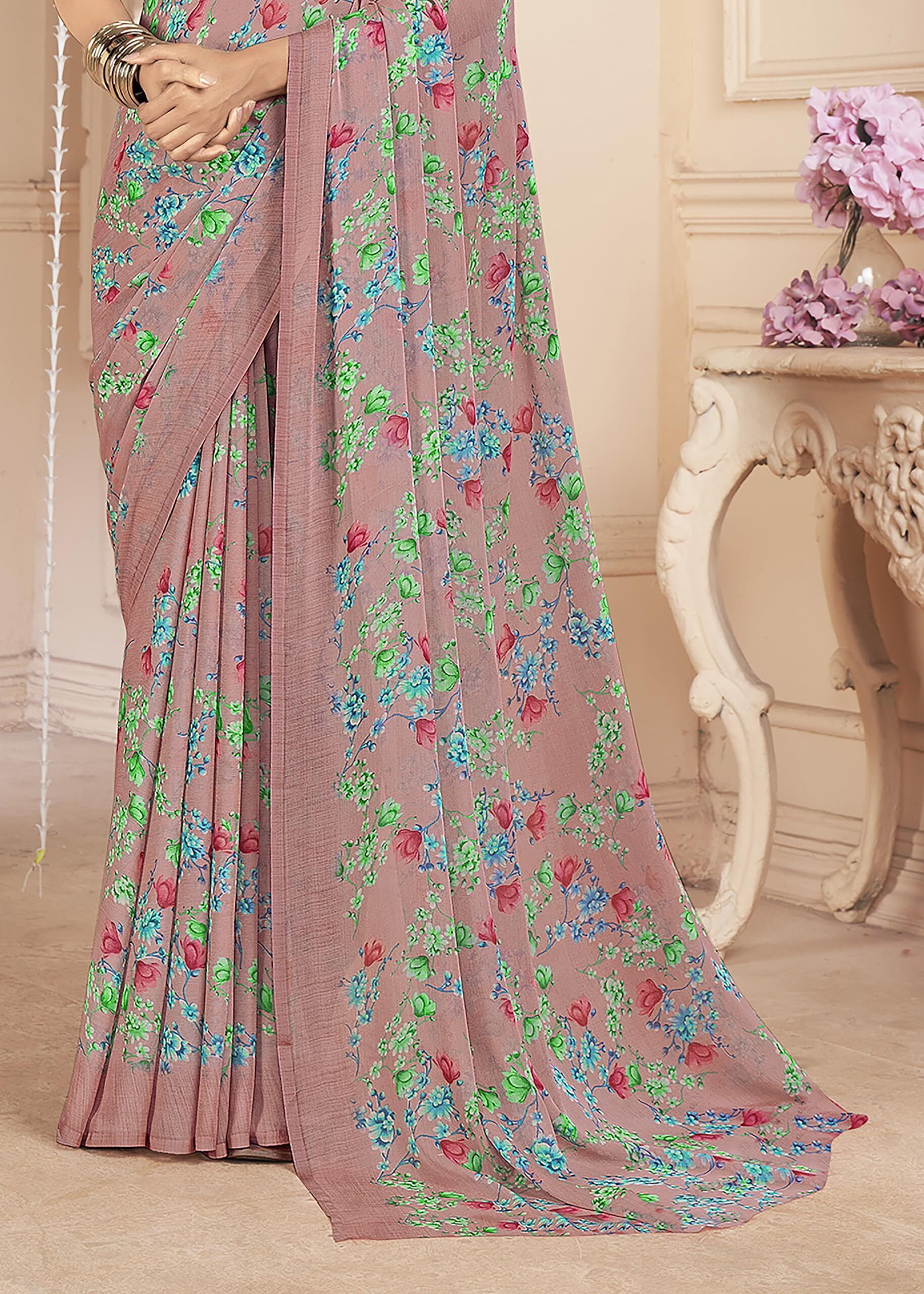 Floral Print, Graphic Print Kalamkari Chiffon, Georgette Saree (Deep Plum)