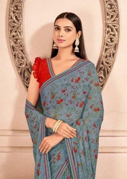 Floral Print, Graphic Print Kalamkari Chiffon, Lace Saree (Pink)