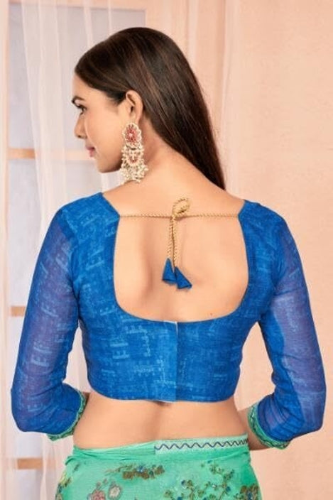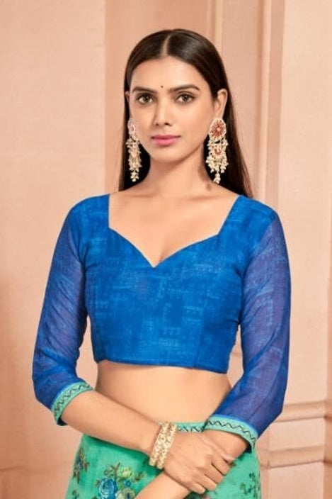 Floral Print Kalamkari Chiffon, Lace Saree (Green)
