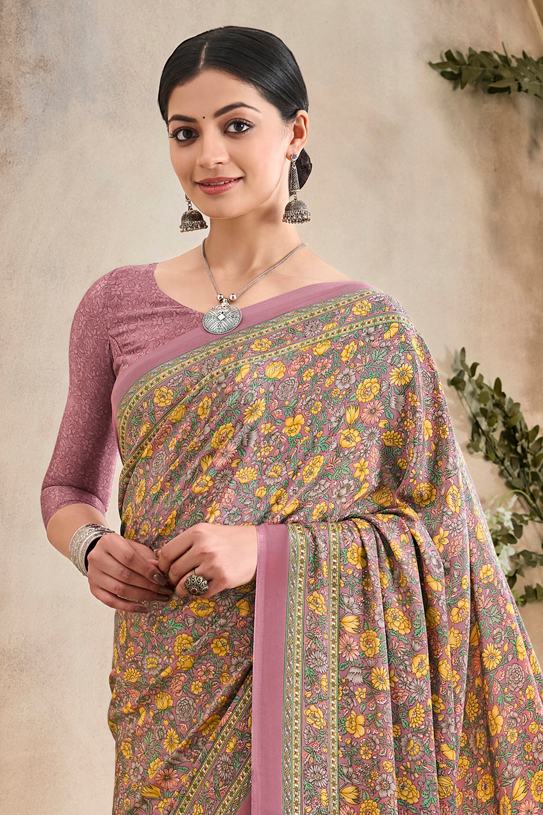 Flower Multi-Coloured Printed, Pure Italian Crape Saree (Pink)