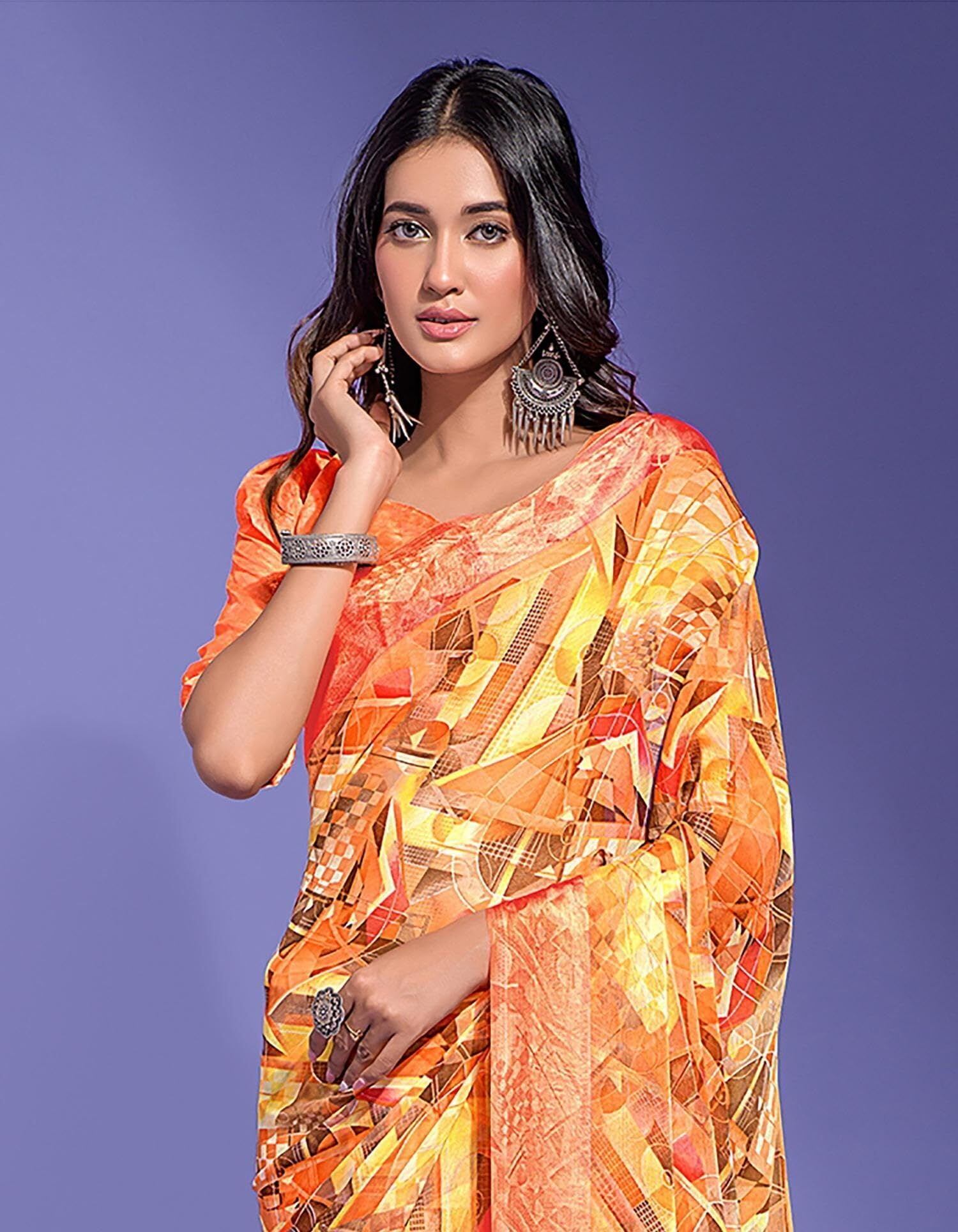 Geometric Print Daily Wear Chiffon Saree (Multicolor)