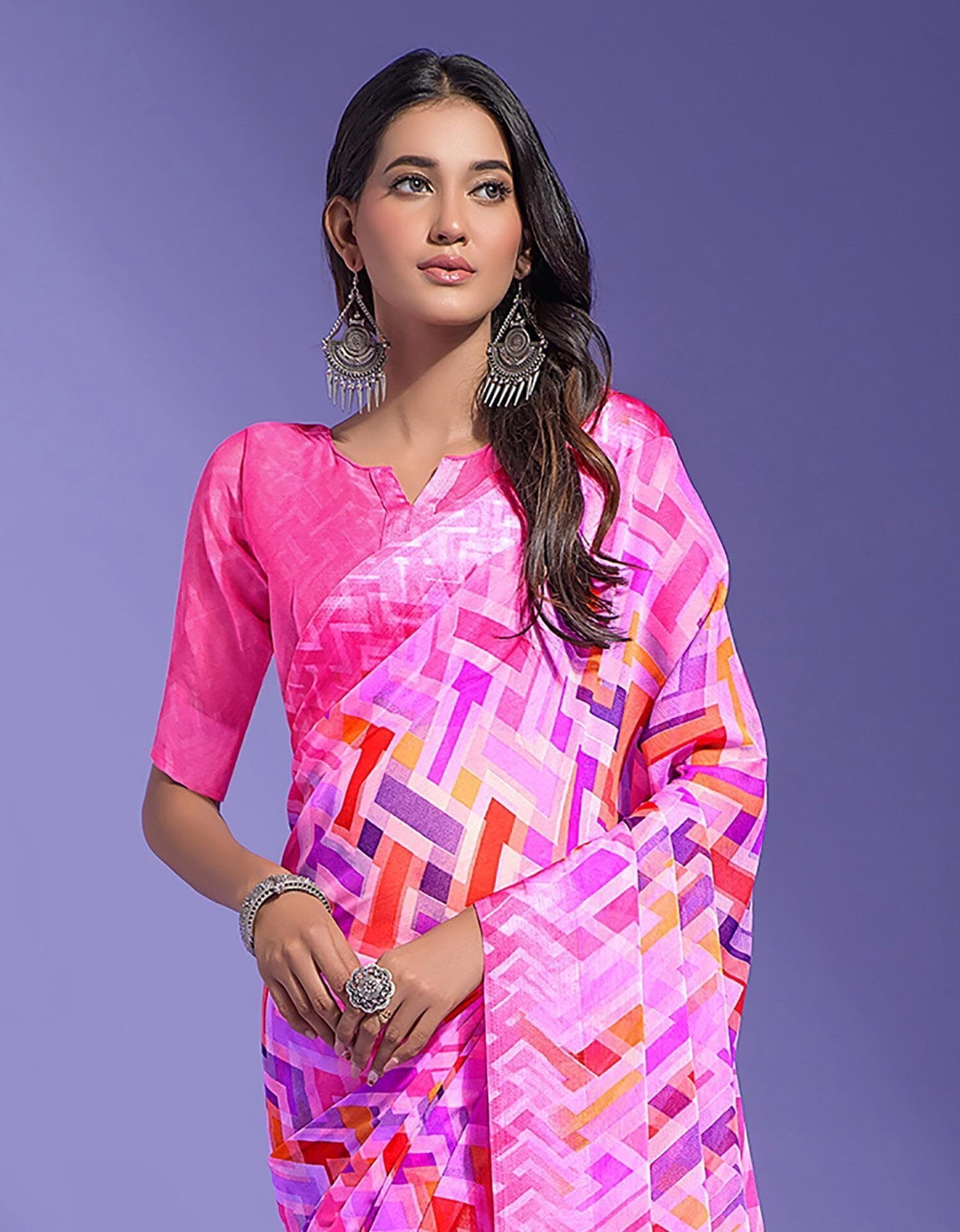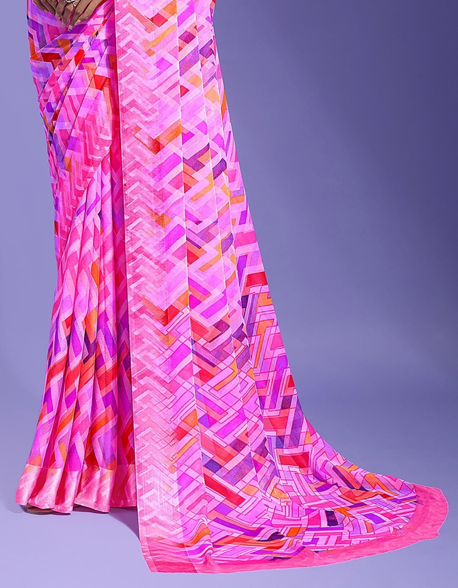 Geometric Print Daily Wear Chiffon Saree (Multicolor)