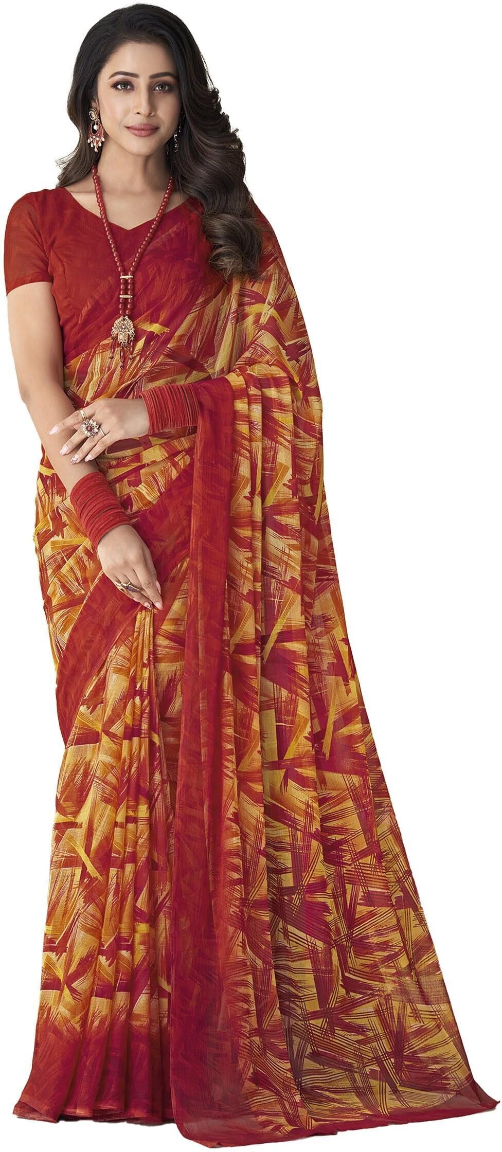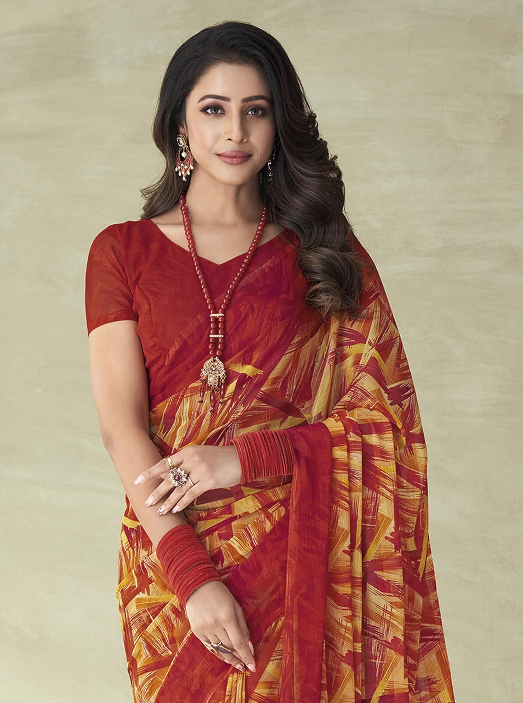 Geometric Print, Graphic Print Bollywood Chiffon, Georgette Saree (Red)