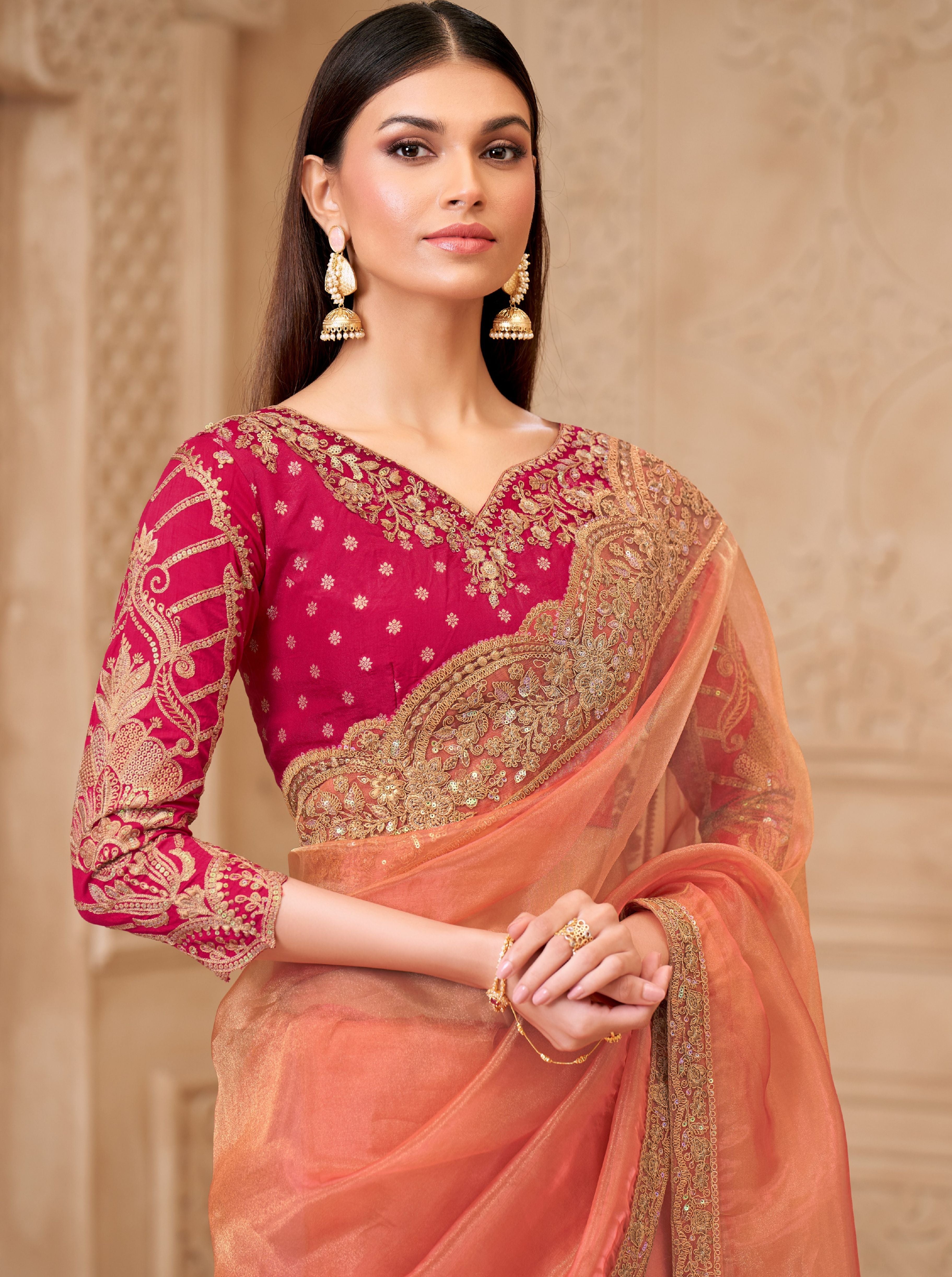 - Saree Fabric: Georgette Silk Saree & Brocade Weaved Blouse