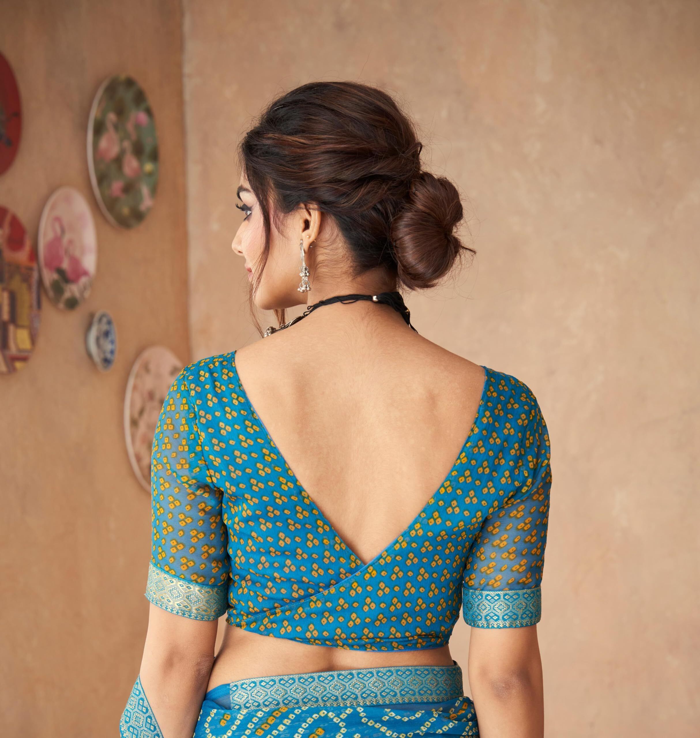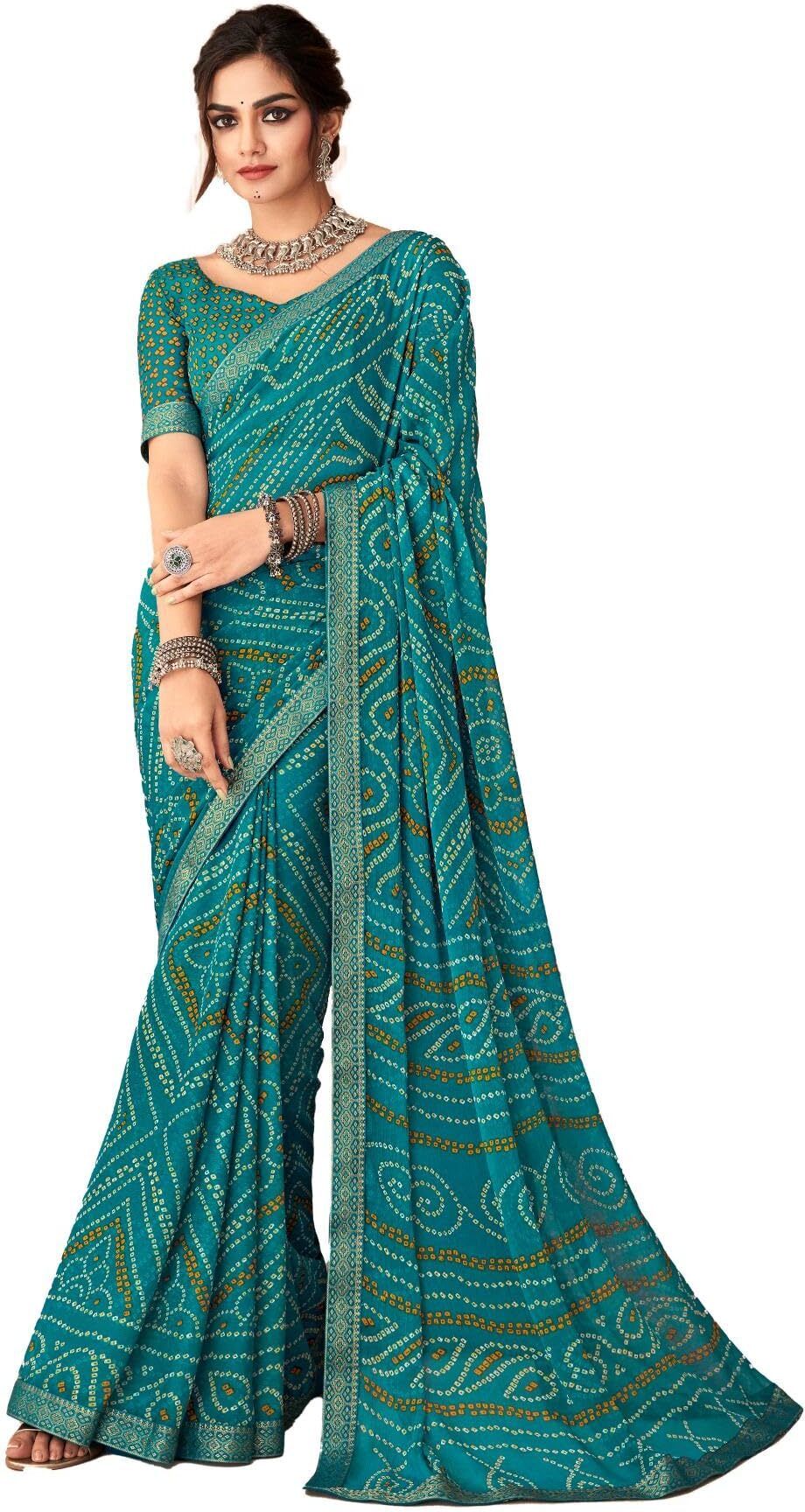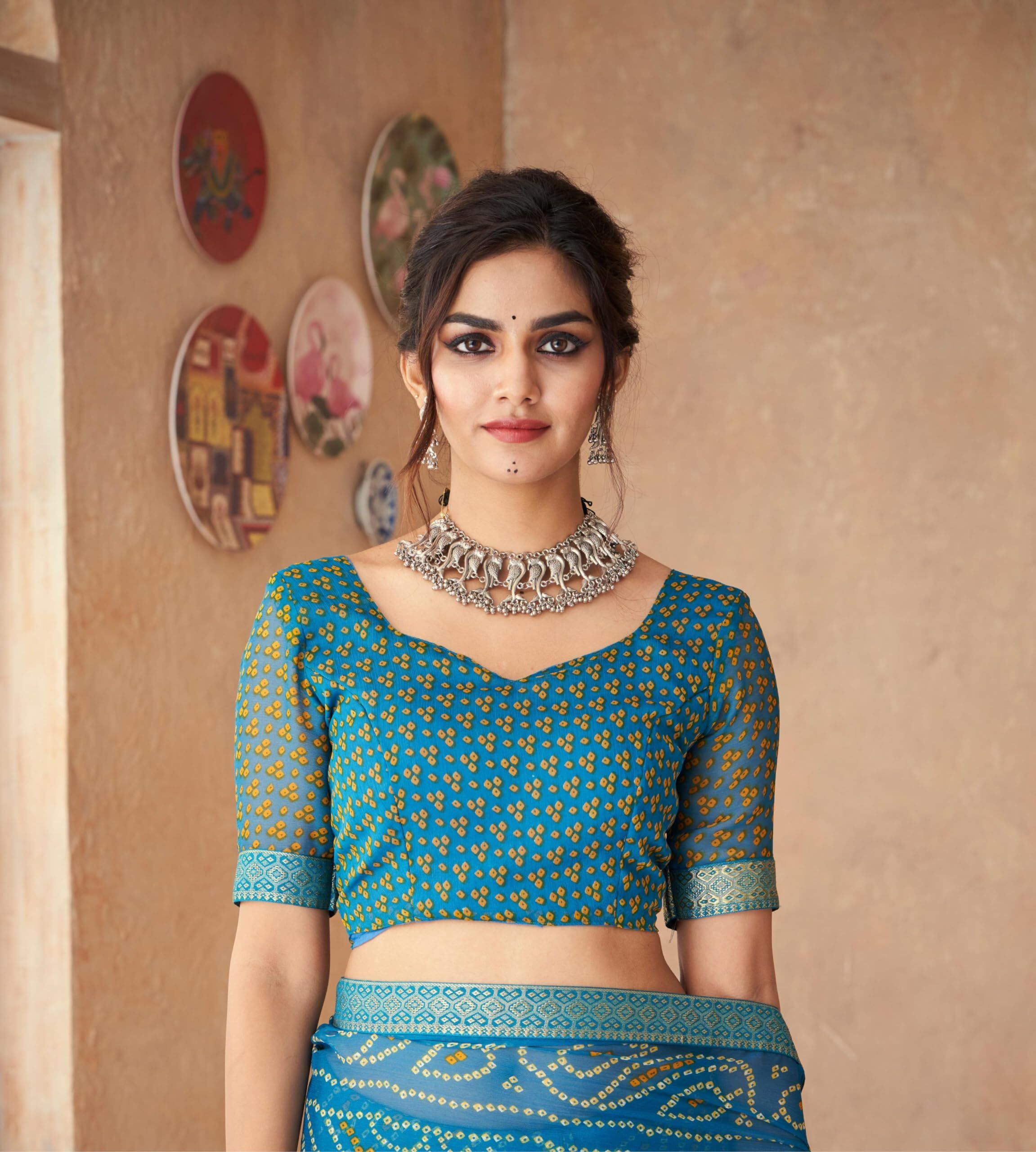 Graphic Bandhani Chiffon Georgette Saree (Sky Blue)