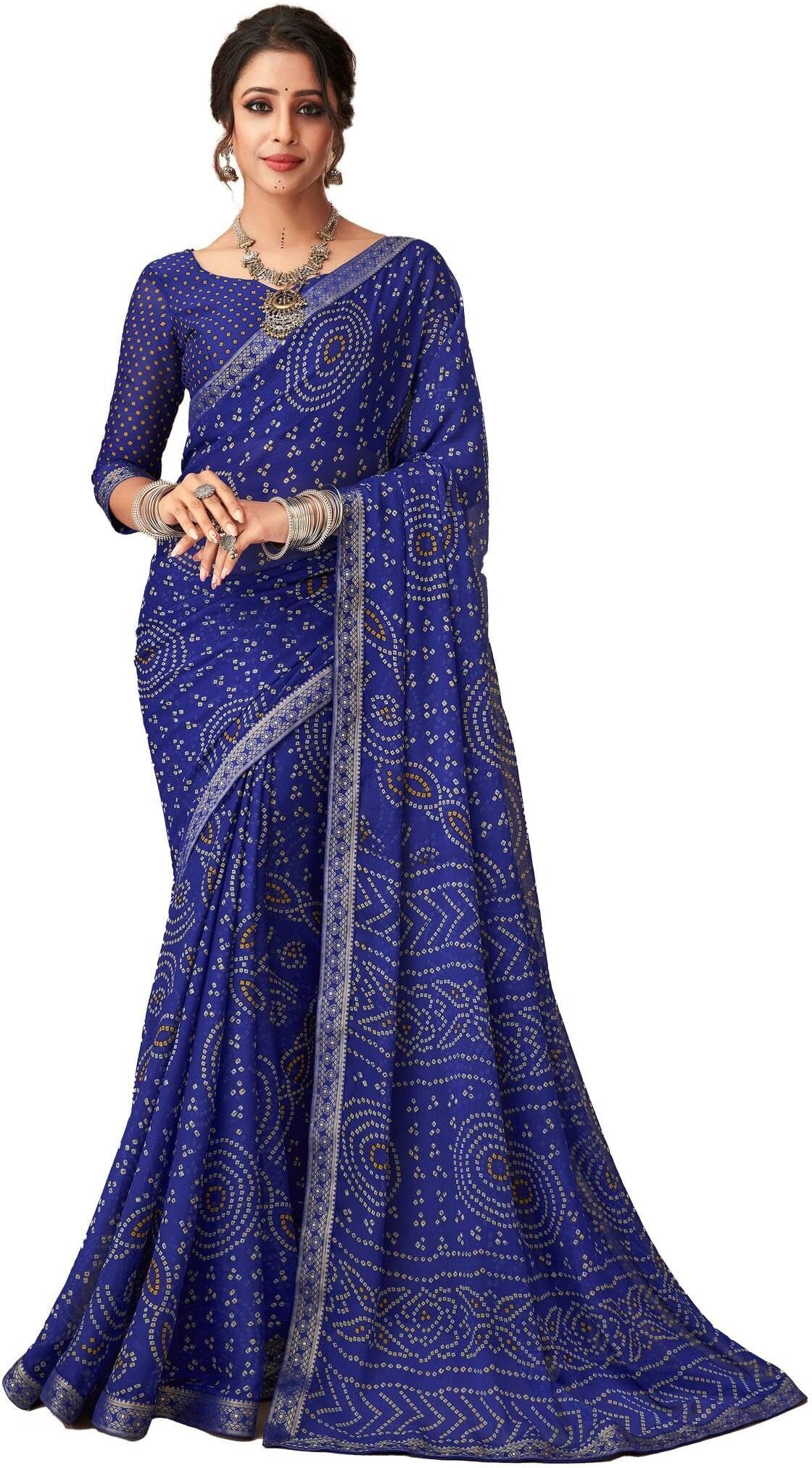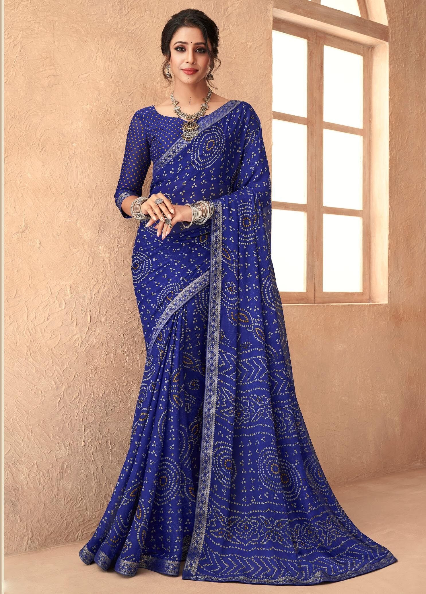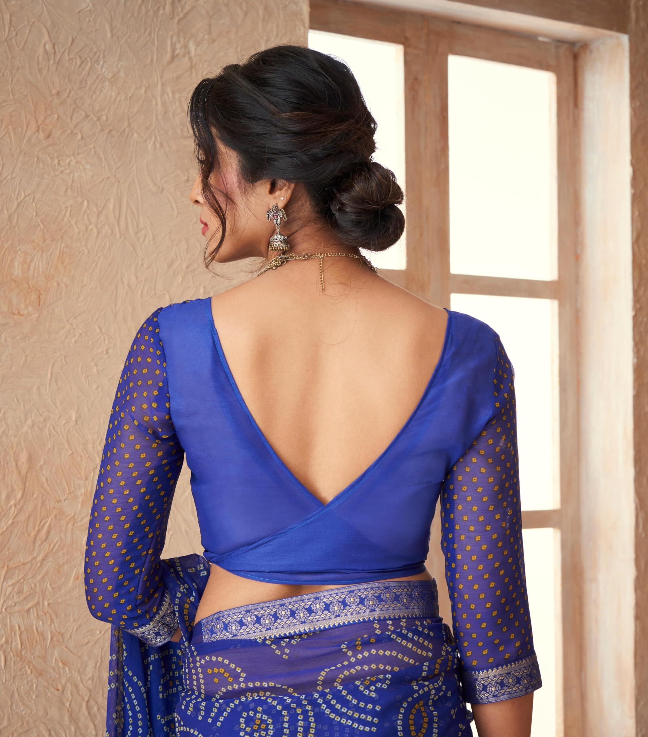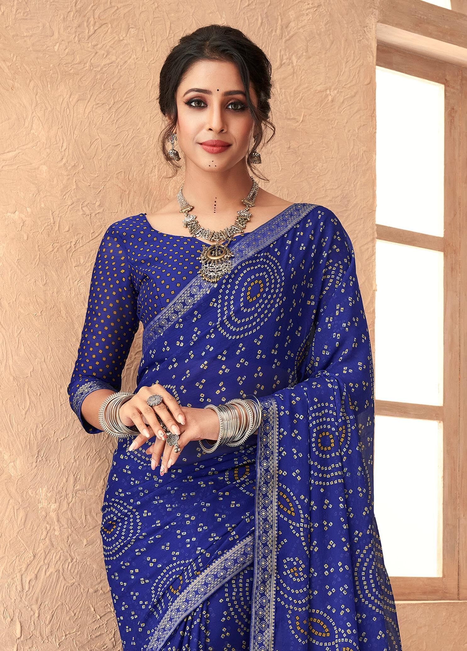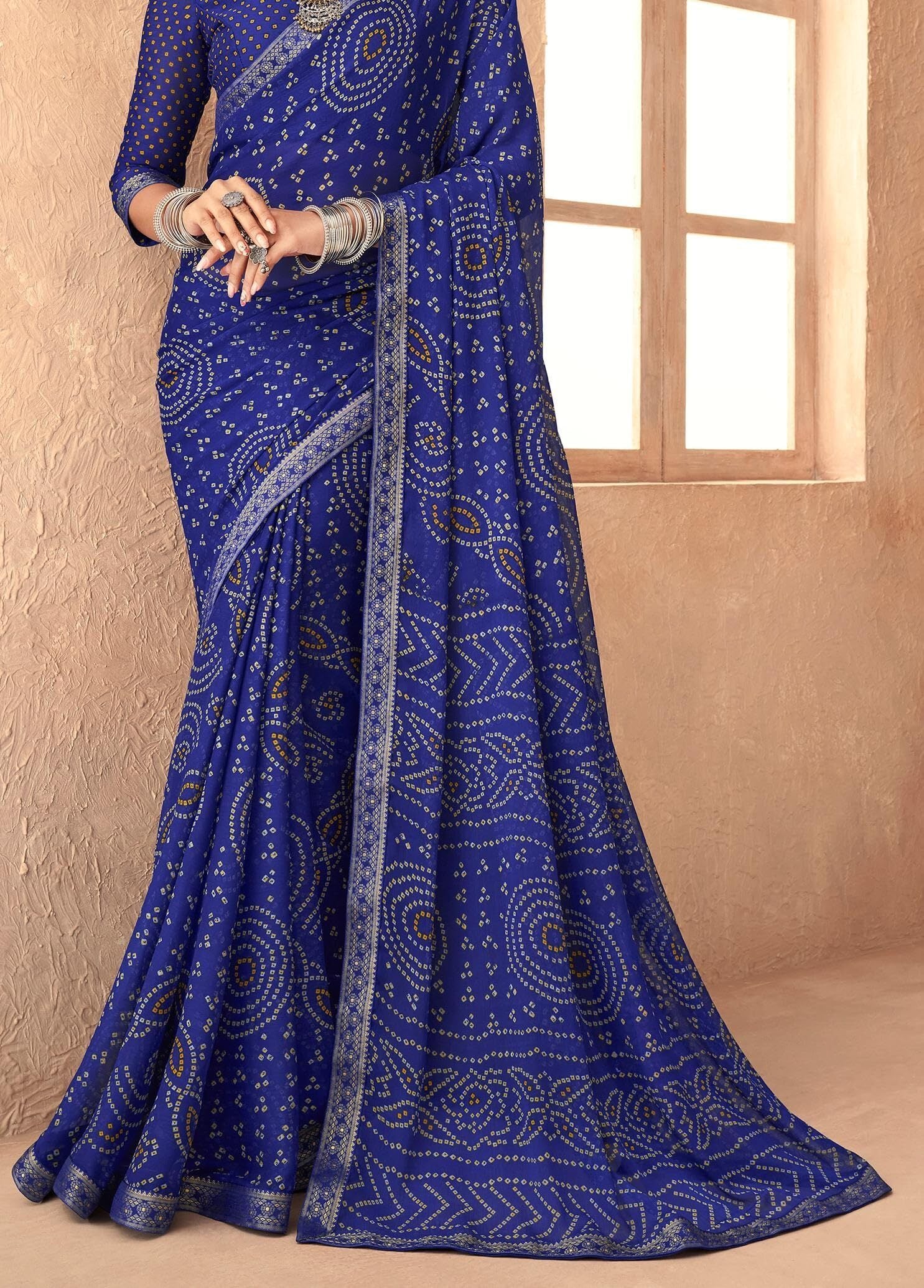 Graphic Print, Printed Bandhani Chiffon, Georgette Saree (Indigo Blue)