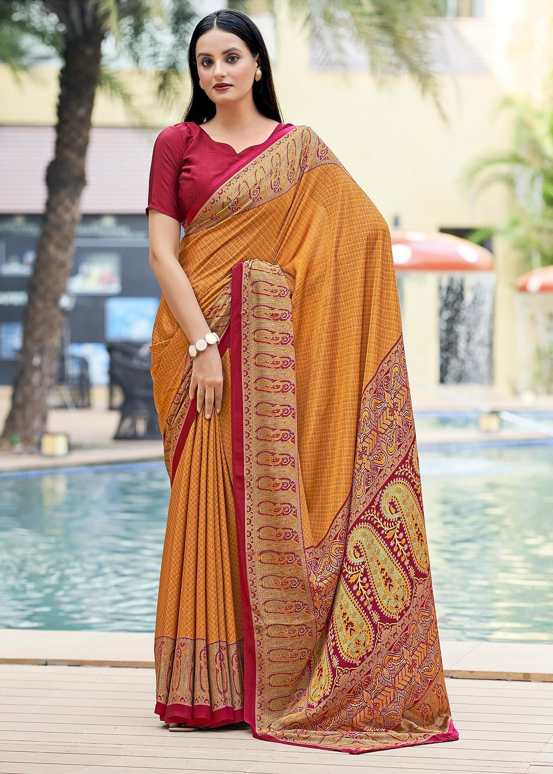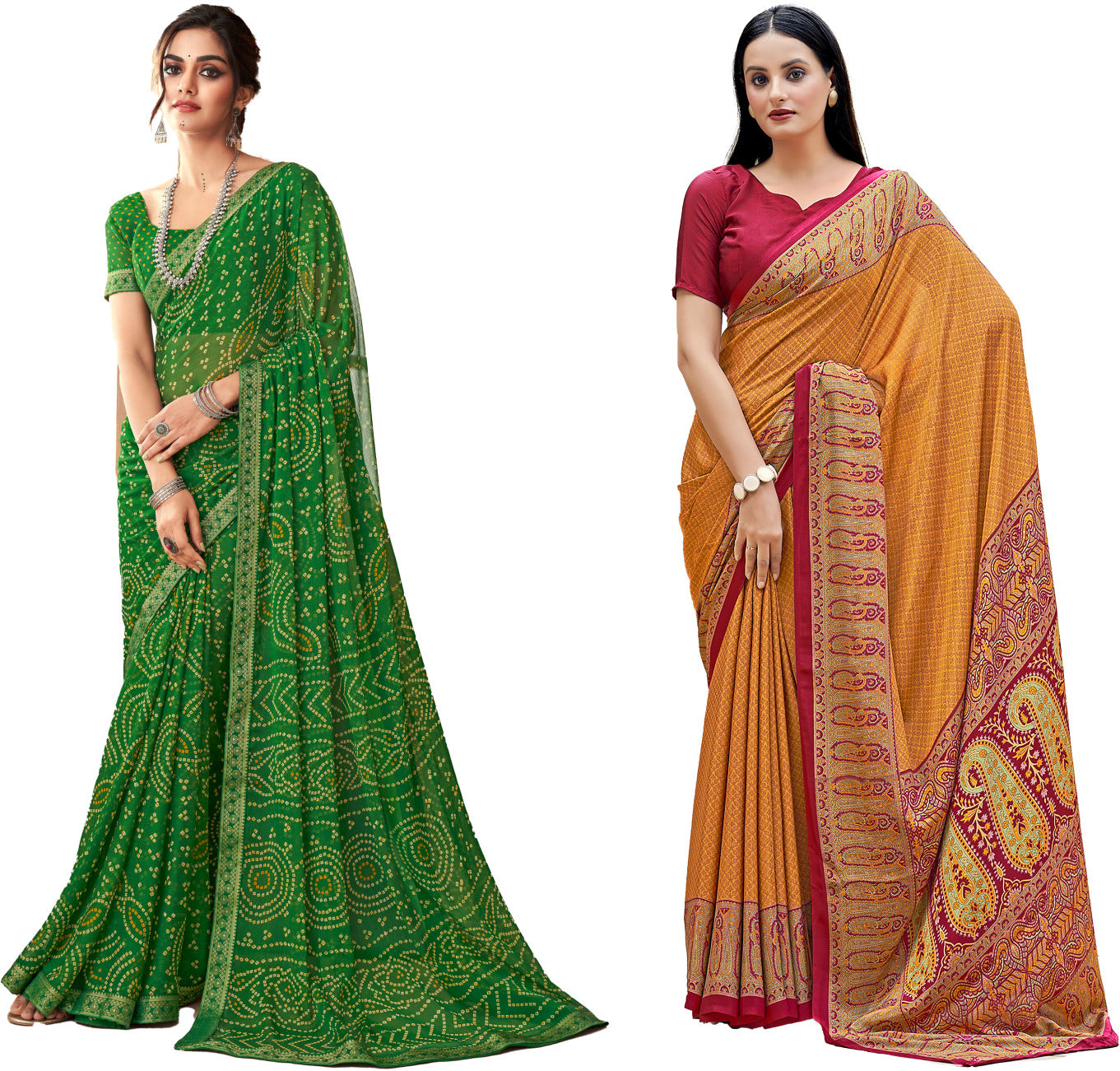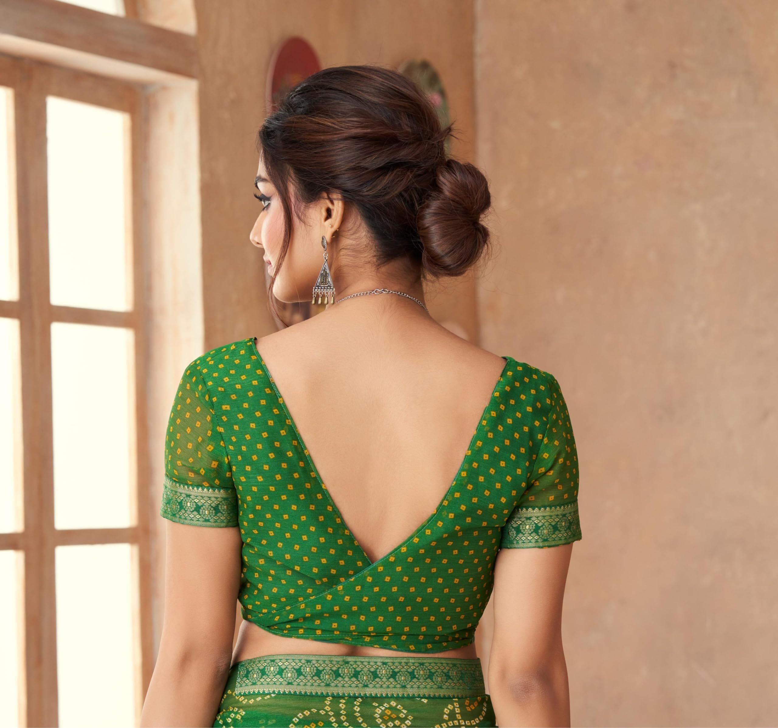 Graphic Print, Printed Bandhani Chiffon, Georgette Saree (Green)