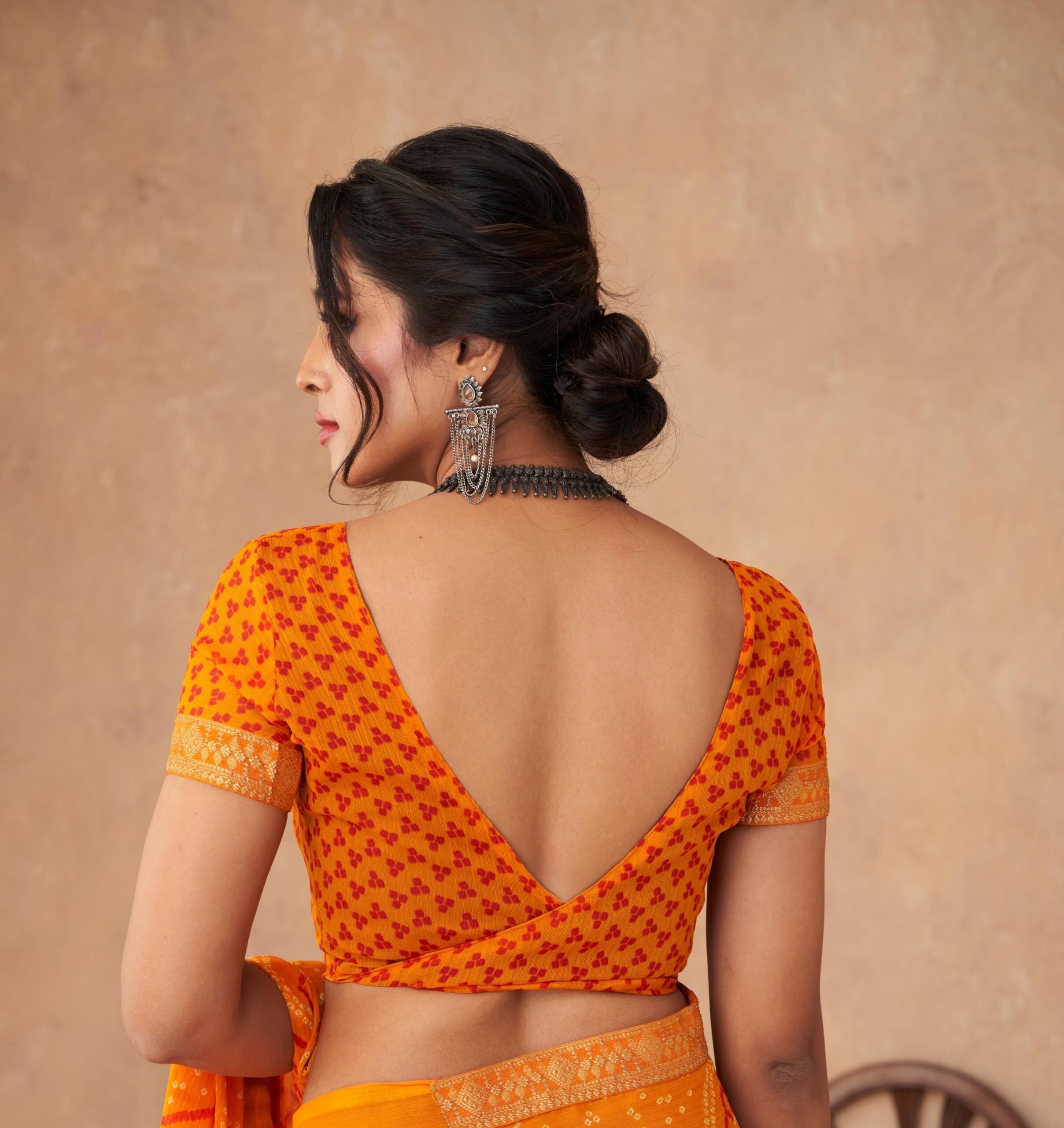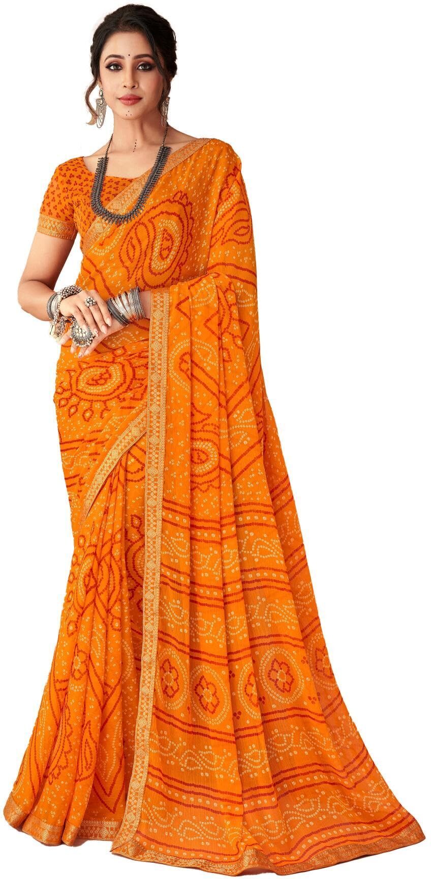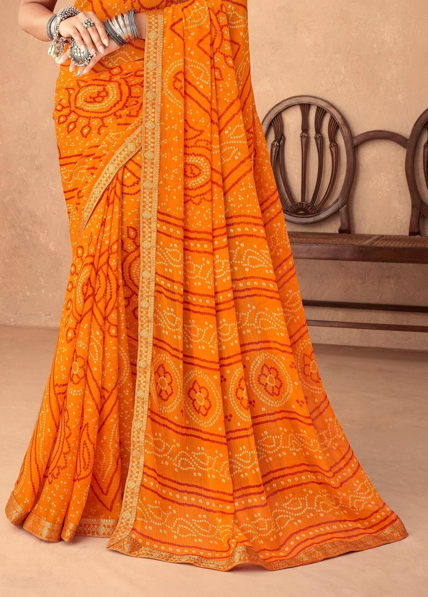 Graphic Print, Printed Bandhani Chiffon, Georgette Saree (Orange)