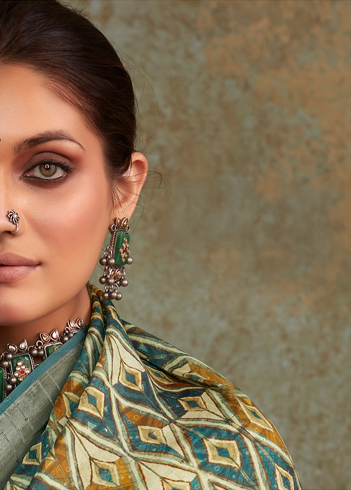 Handloom with All Over Print, Sequence Weaving Saree (Cream)