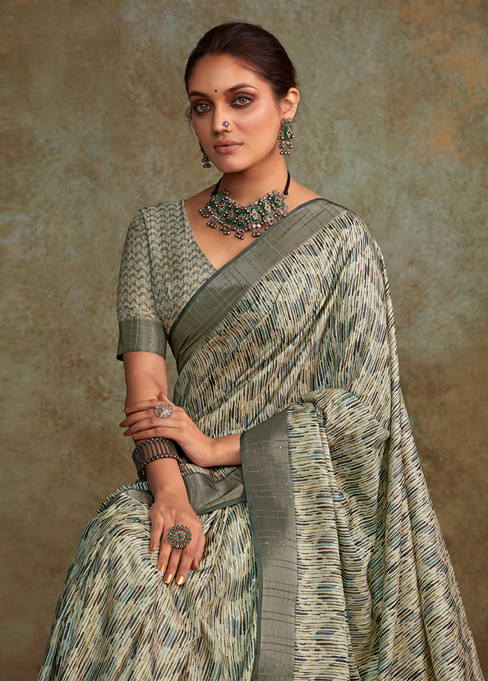 Handloom with All Over Print, Sequence Weaving Saree (Grey)