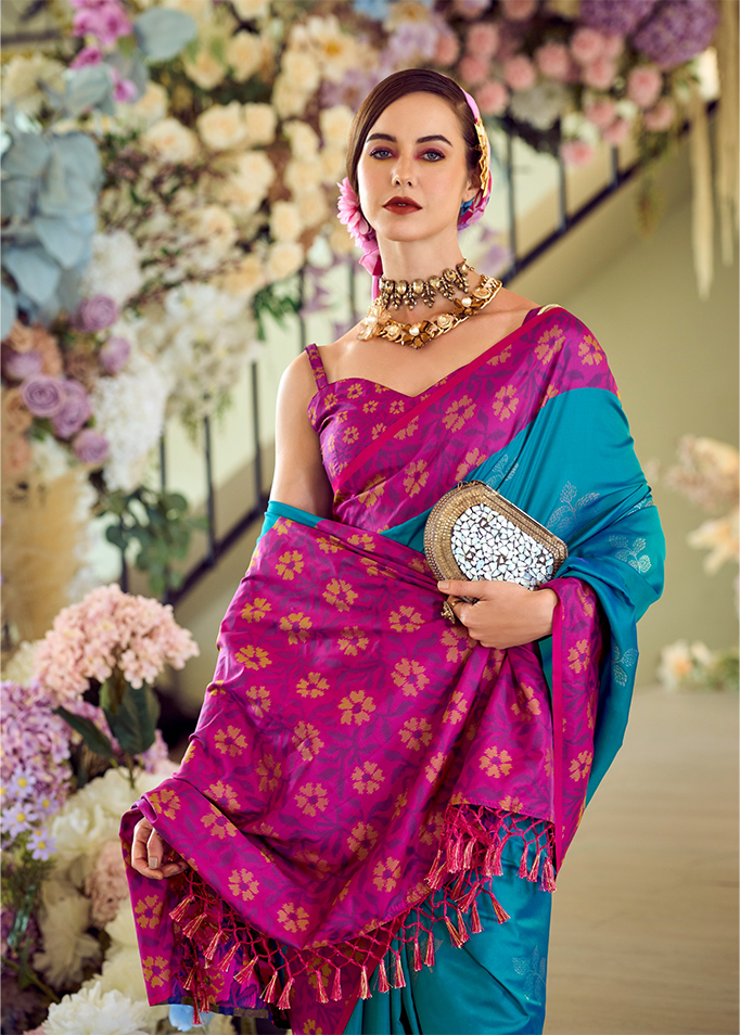 Ikkat Border, Soft silk Contrast pallu Saree (Blue)