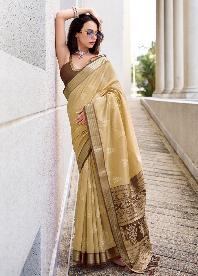 Ikkat Weaving, Reyon silk Contrast pallu Saree (Chiku)
