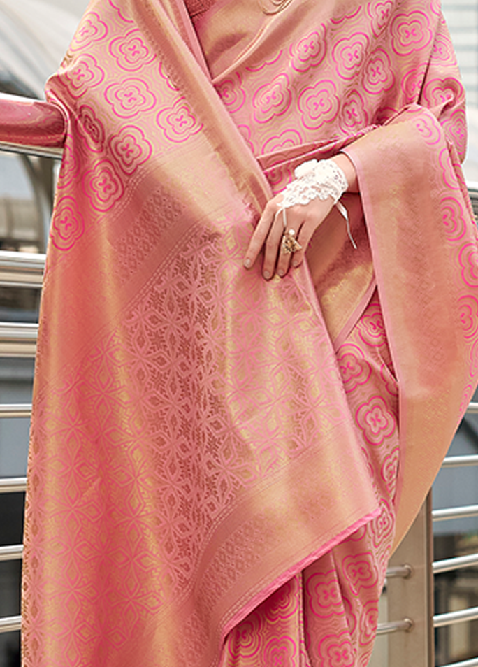 Kanjivaram style, sattin crape silk Saree (Pink)