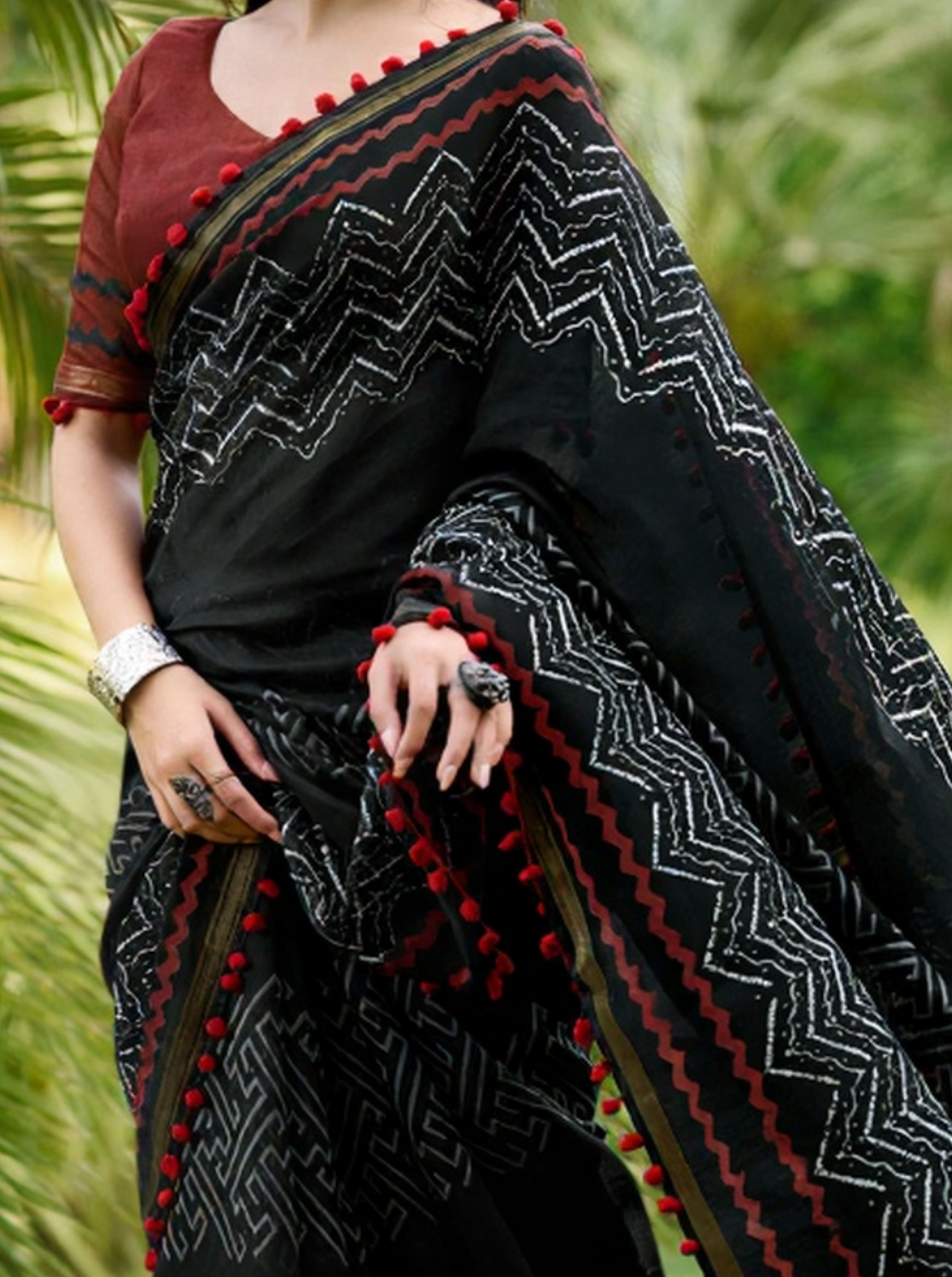 Stay stylish and comfortable with this elegant Mal Mal Cotton Saree, designed with a trendy pum pum border for a fresh ethnic look. Soft on the skin and easy to maintain, this saree is perfect for everyday wear, casual events, and warm-weather styling.