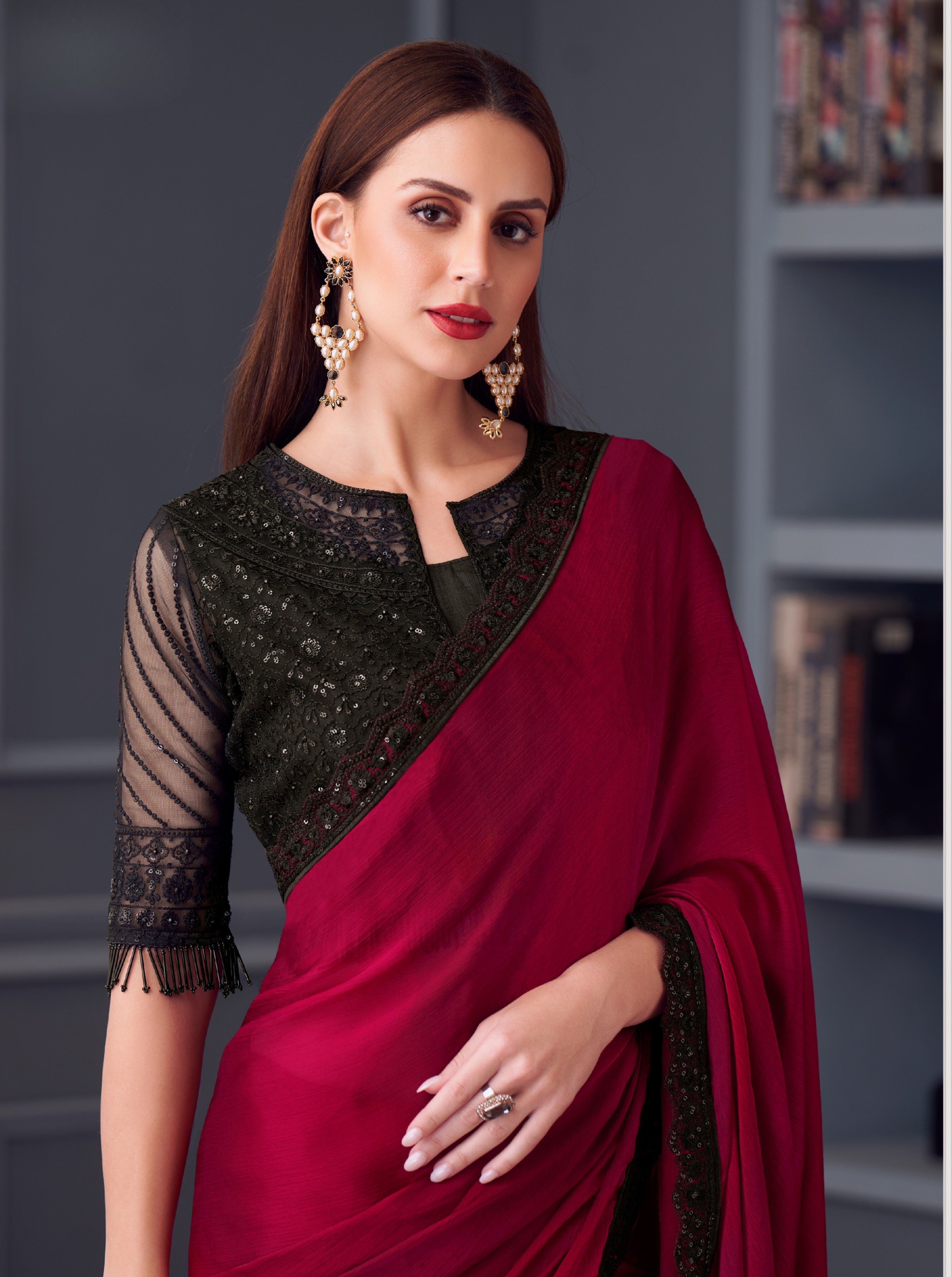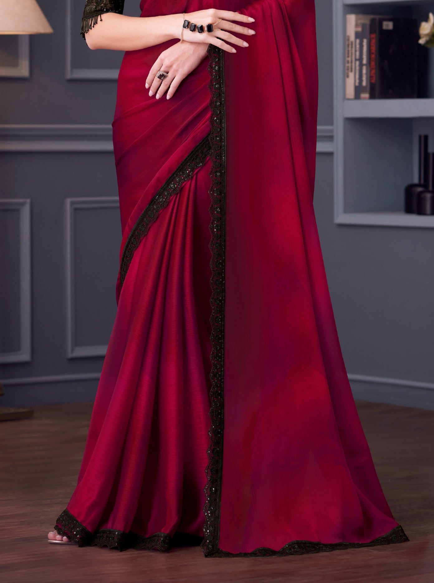 Add a touch of luxury to your ethnic wardrobe with this stunning Midas Touch Satin Chiffon Saree, designed to radiate elegance and glamour. Crafted from premium satin chiffon fabric, this saree features a soft, flowy drape with a subtle shine that enhances its rich and graceful appeal. Lightweight and comfortable, it is perfect for long celebrations and special occasions.