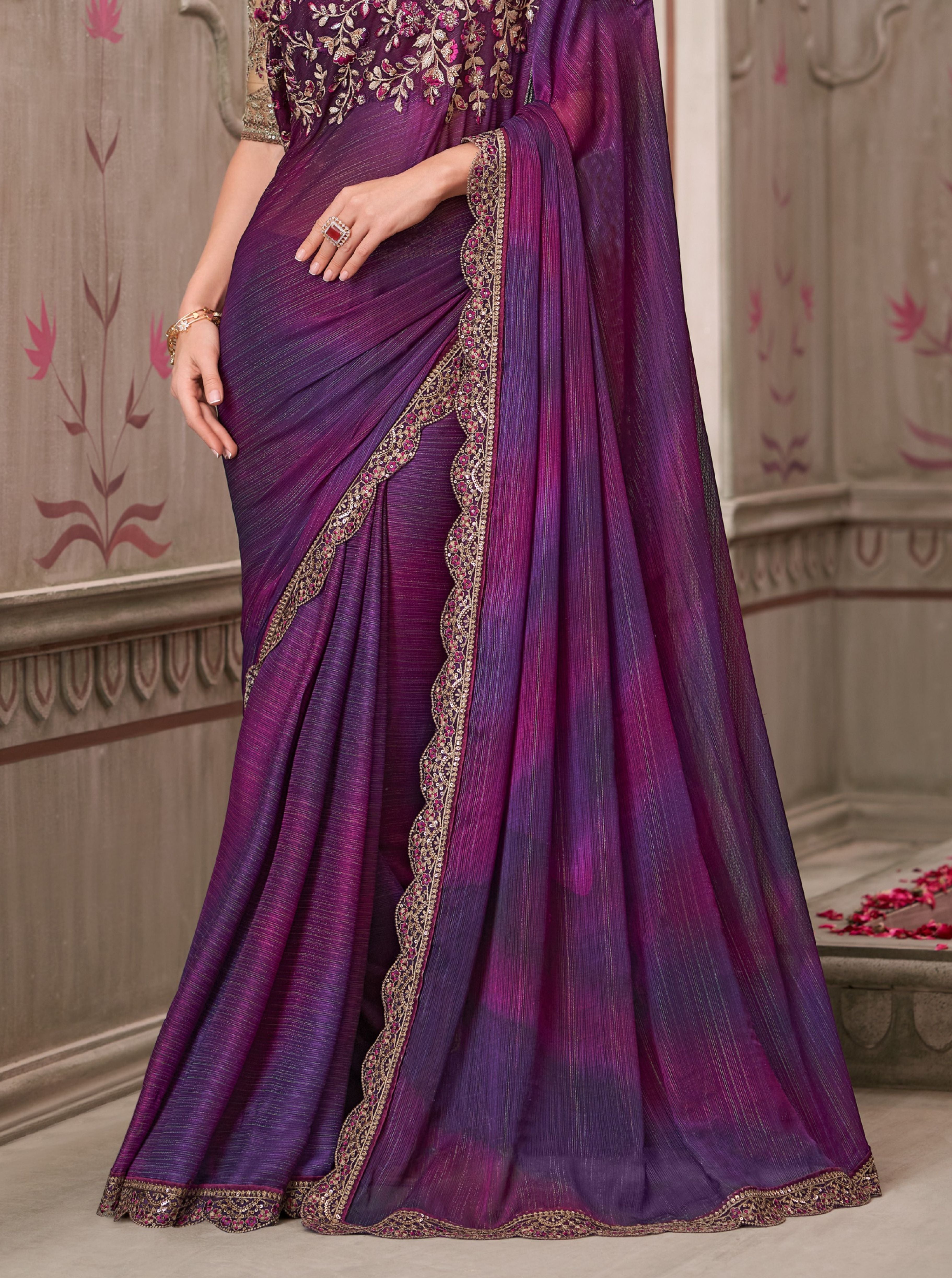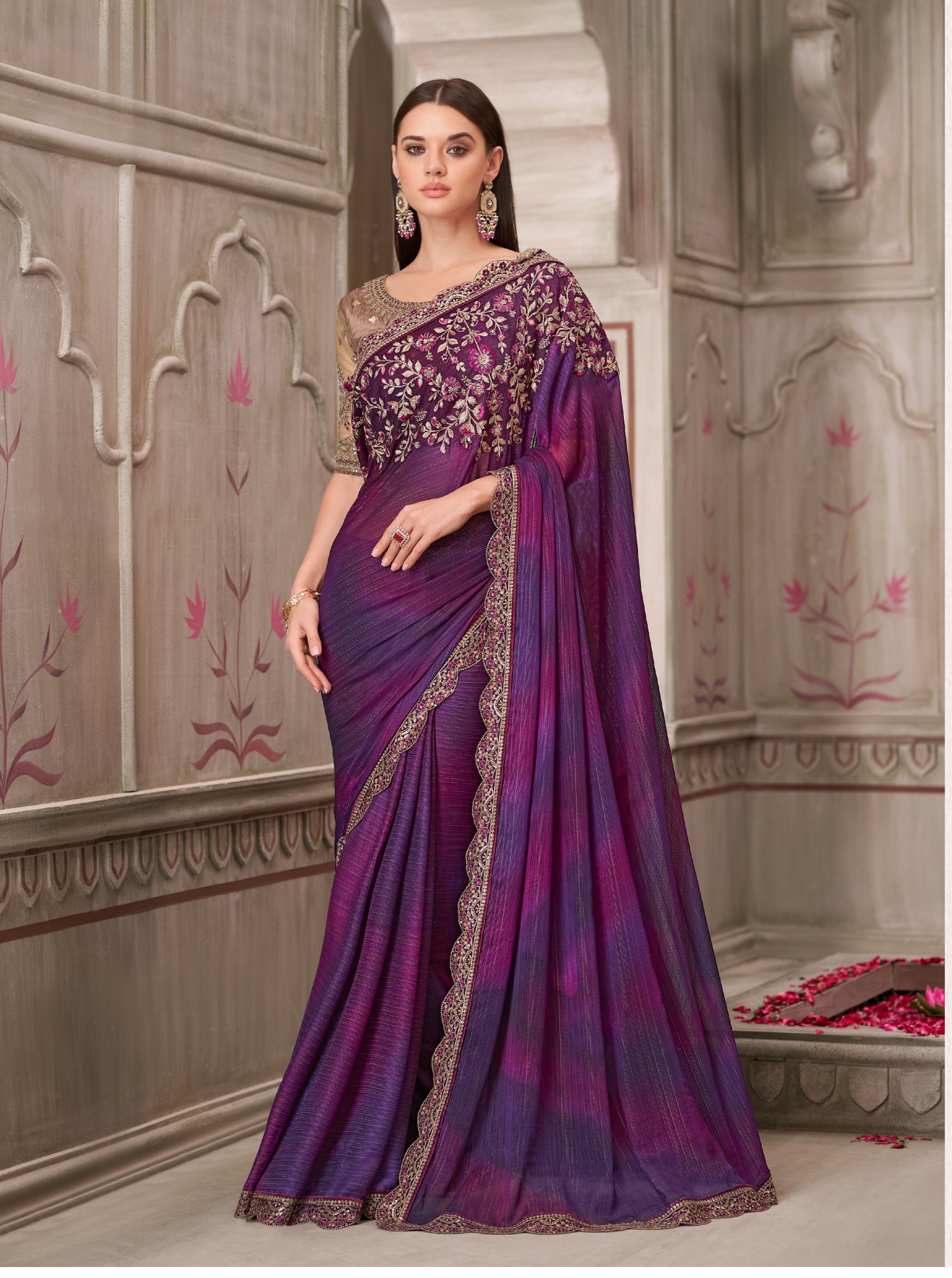 Mulberry Shimmer Satin Georgette Saree