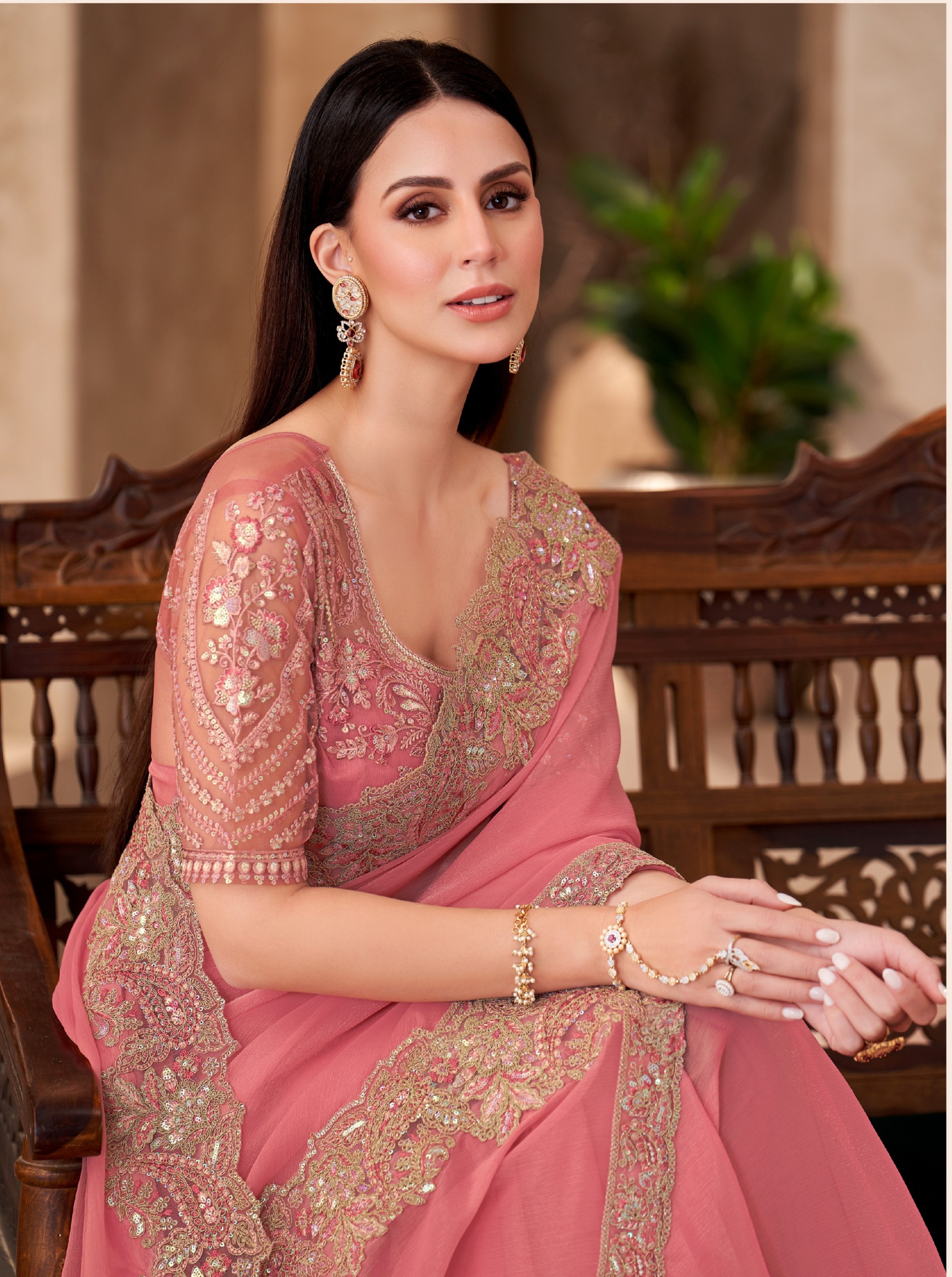 Peach Georgette Saree with Designer Georgette Work Blouse