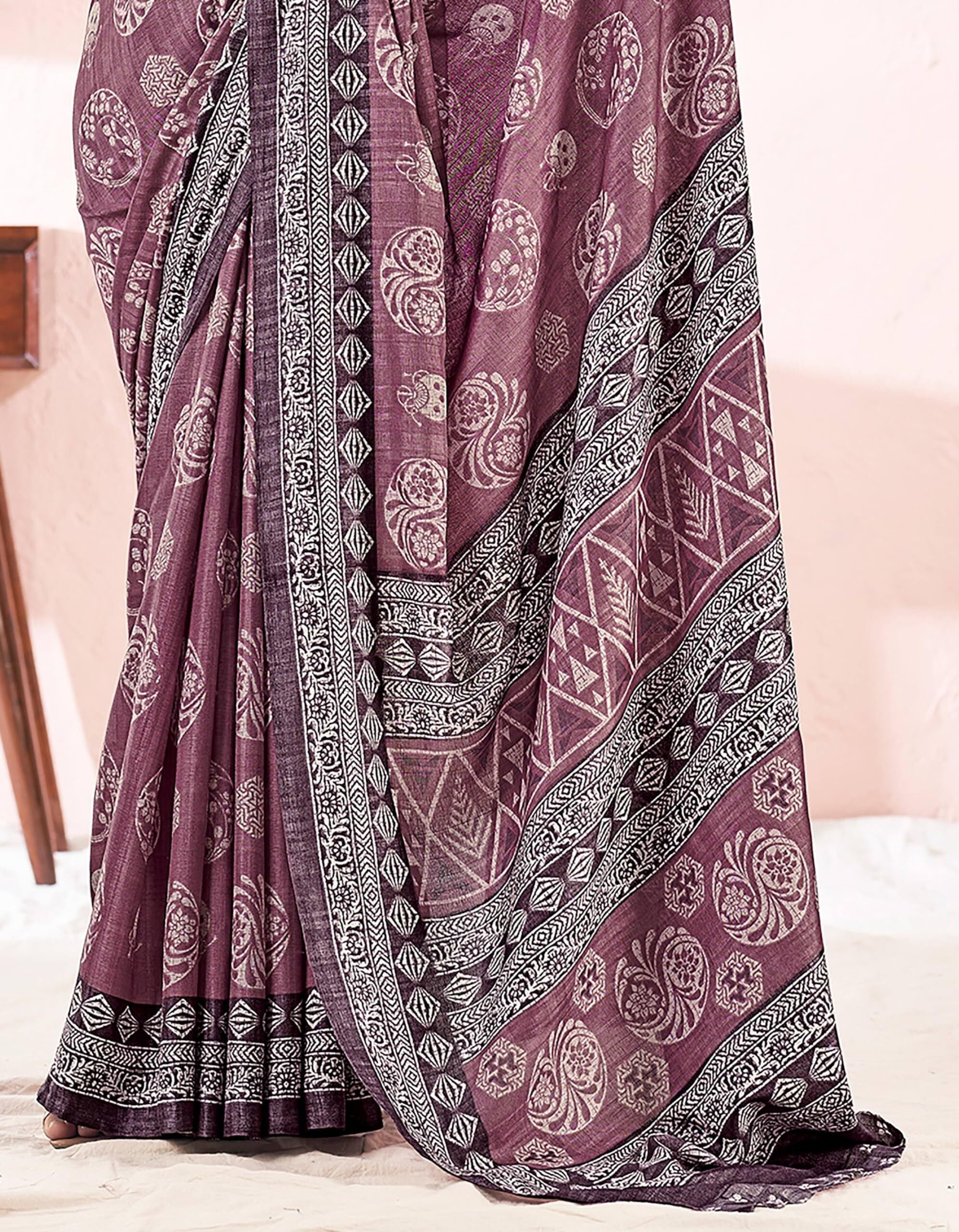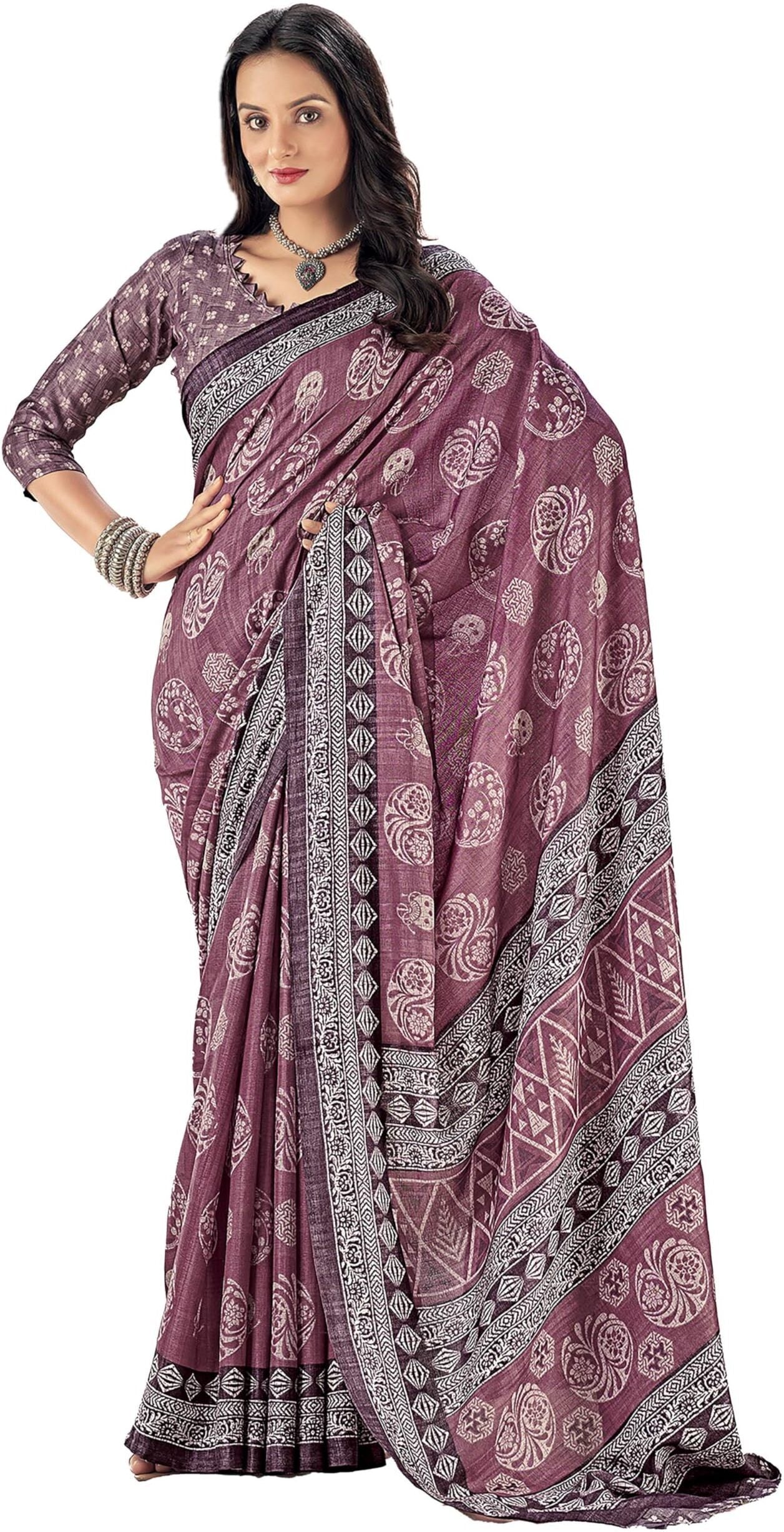 Printed Daily Wear Cotton Silk, Tussar Silk Saree (Purple)