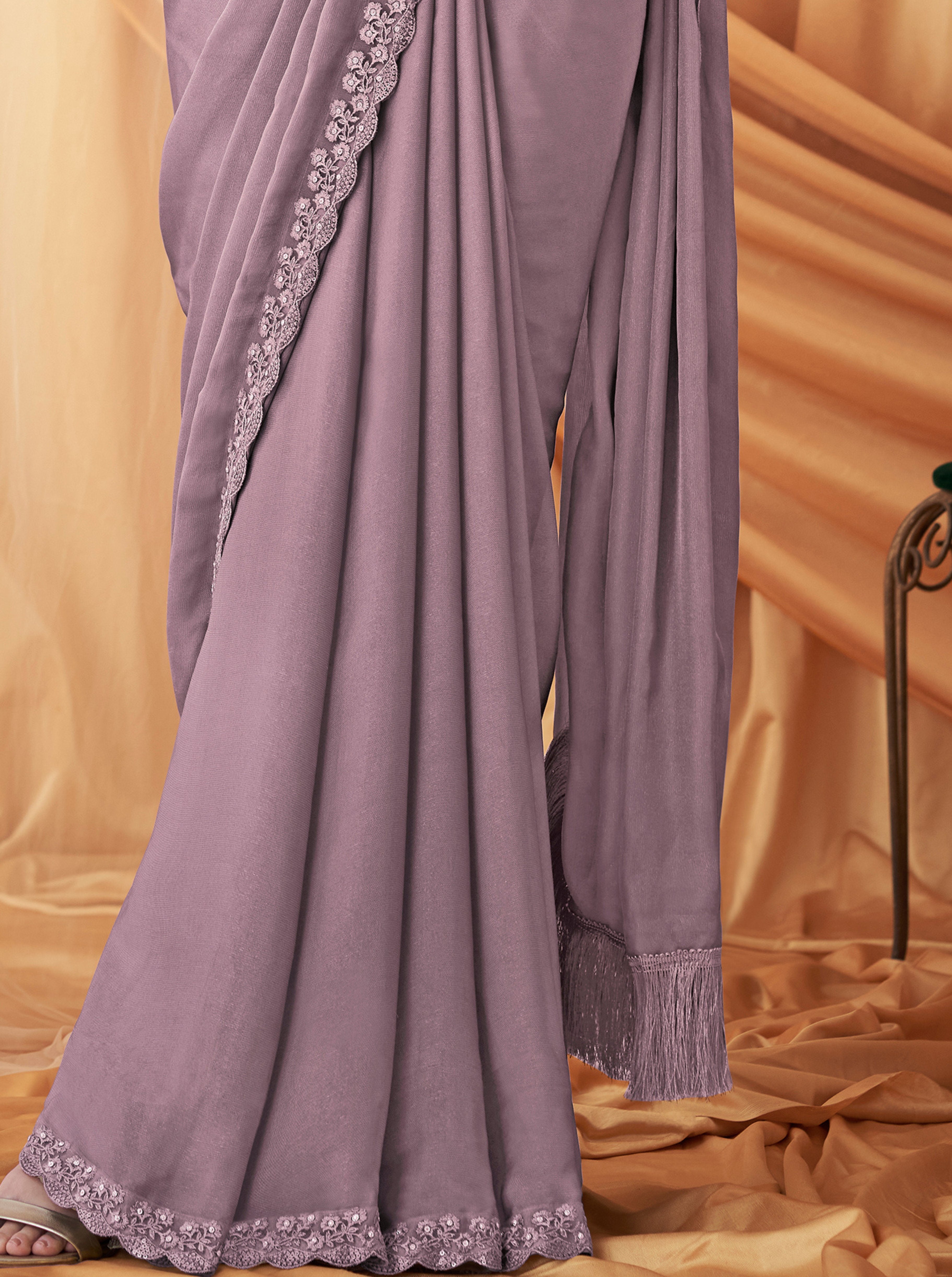 - Pattern: Shimmer saree with embroidered detailing and decorative glass latkans