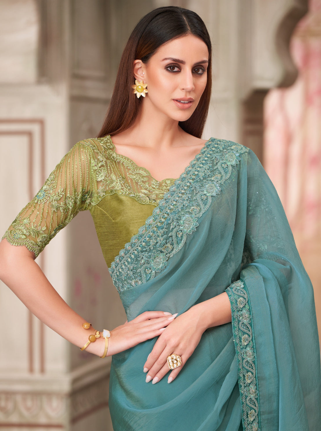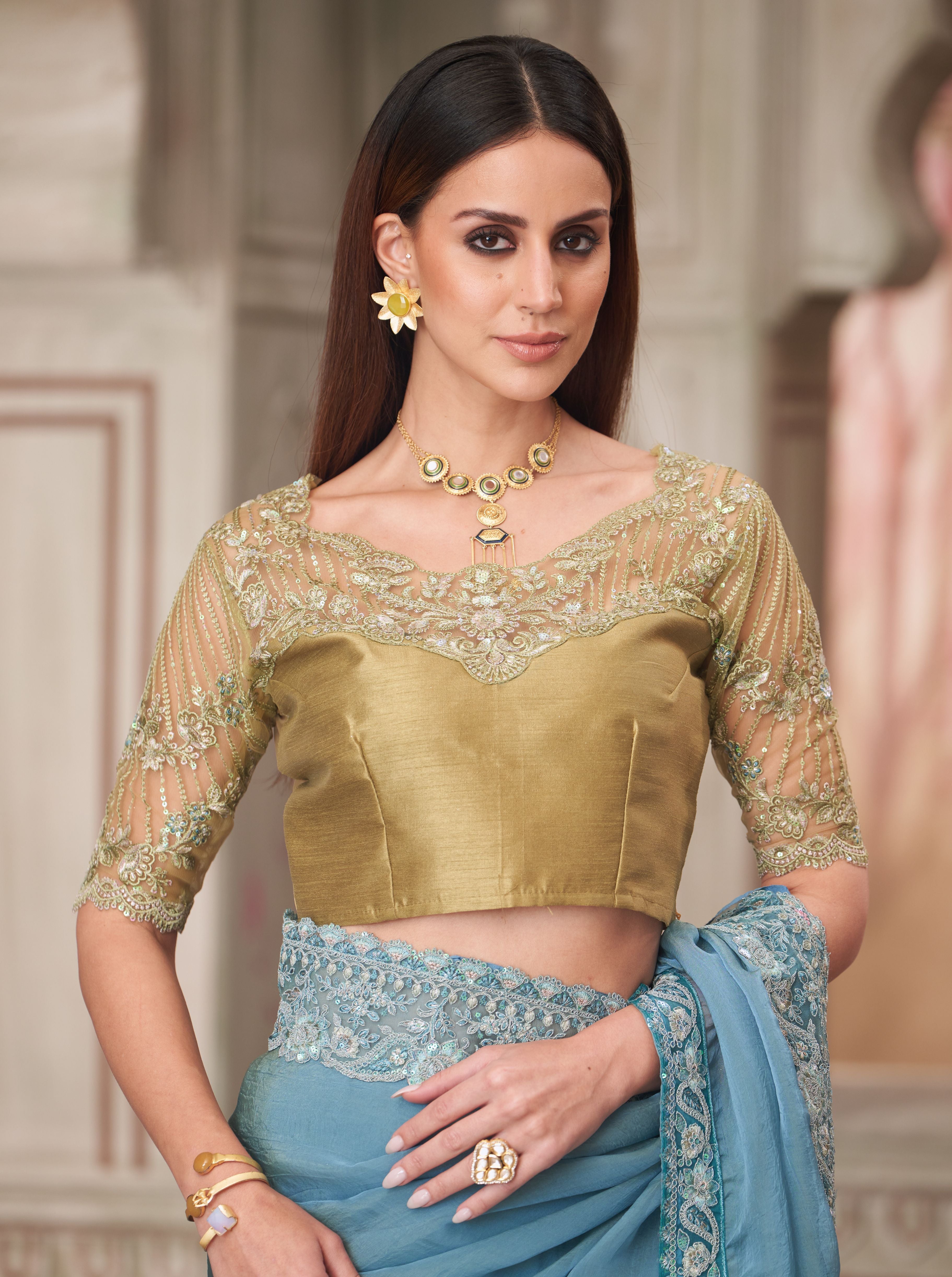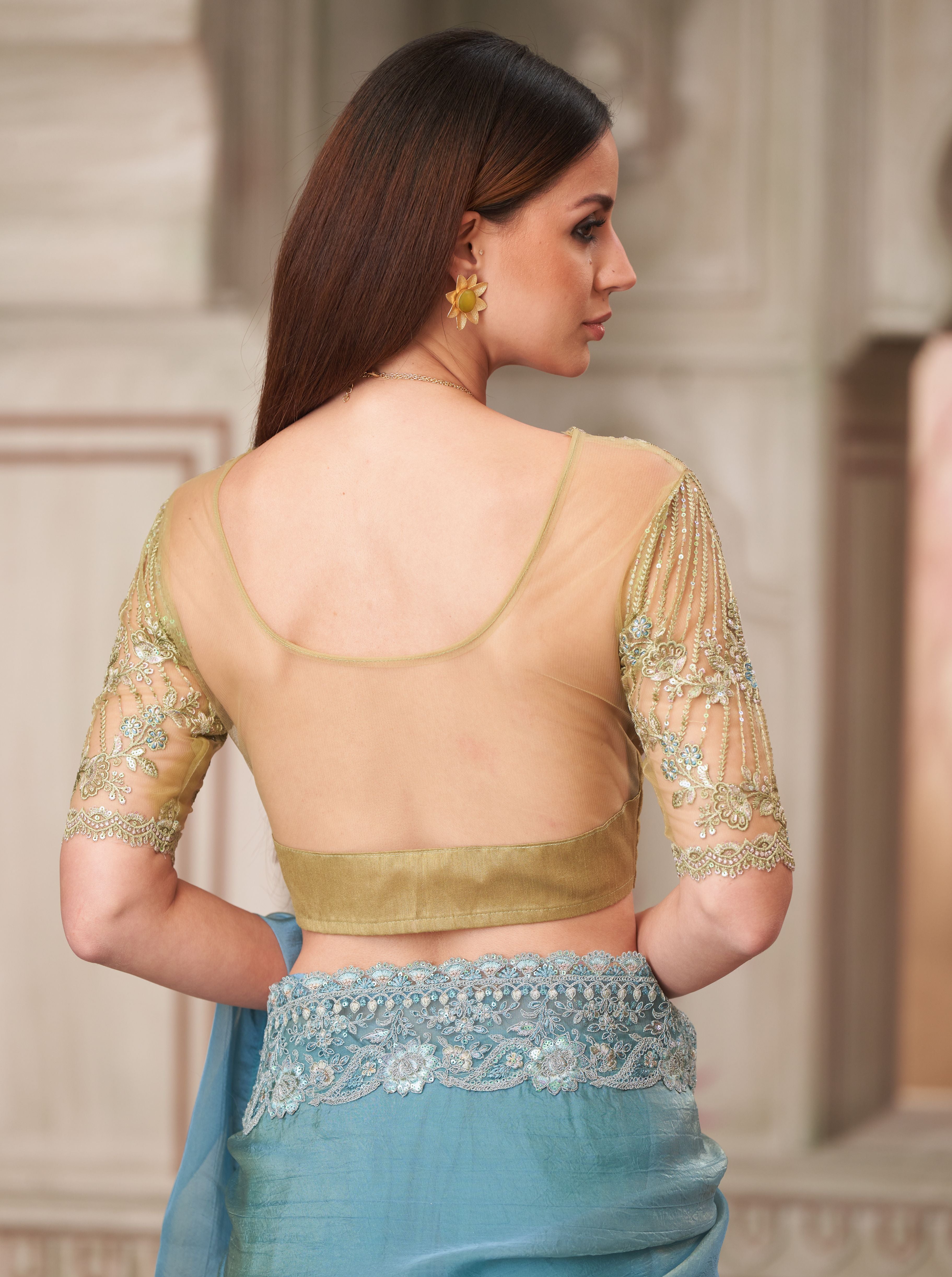 Rainbow Georgette Silk Saree with Tussar Silk Blouse