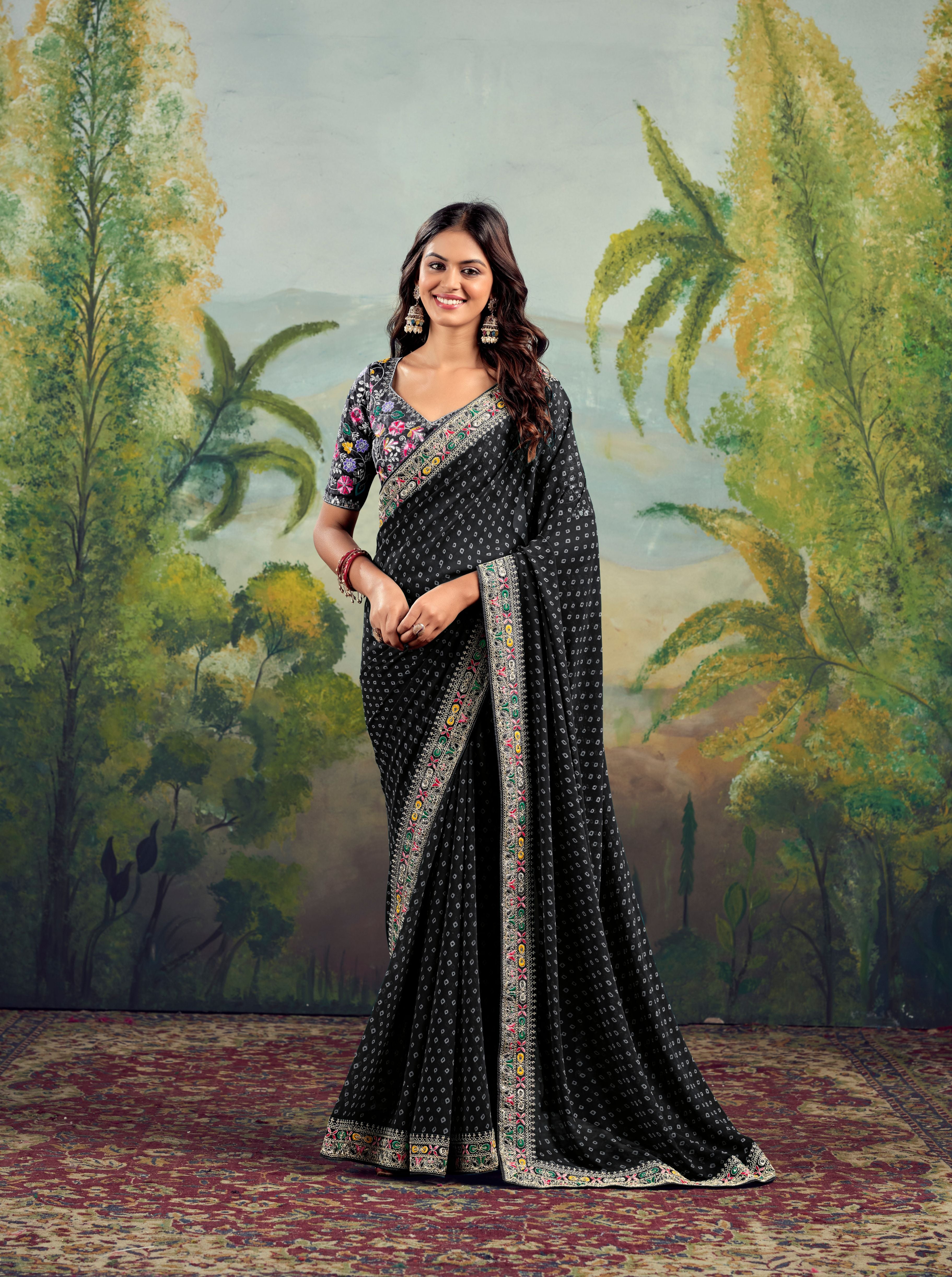 - Pattern: Solid Raw Silk Saree with Rich Embroidered Blouse