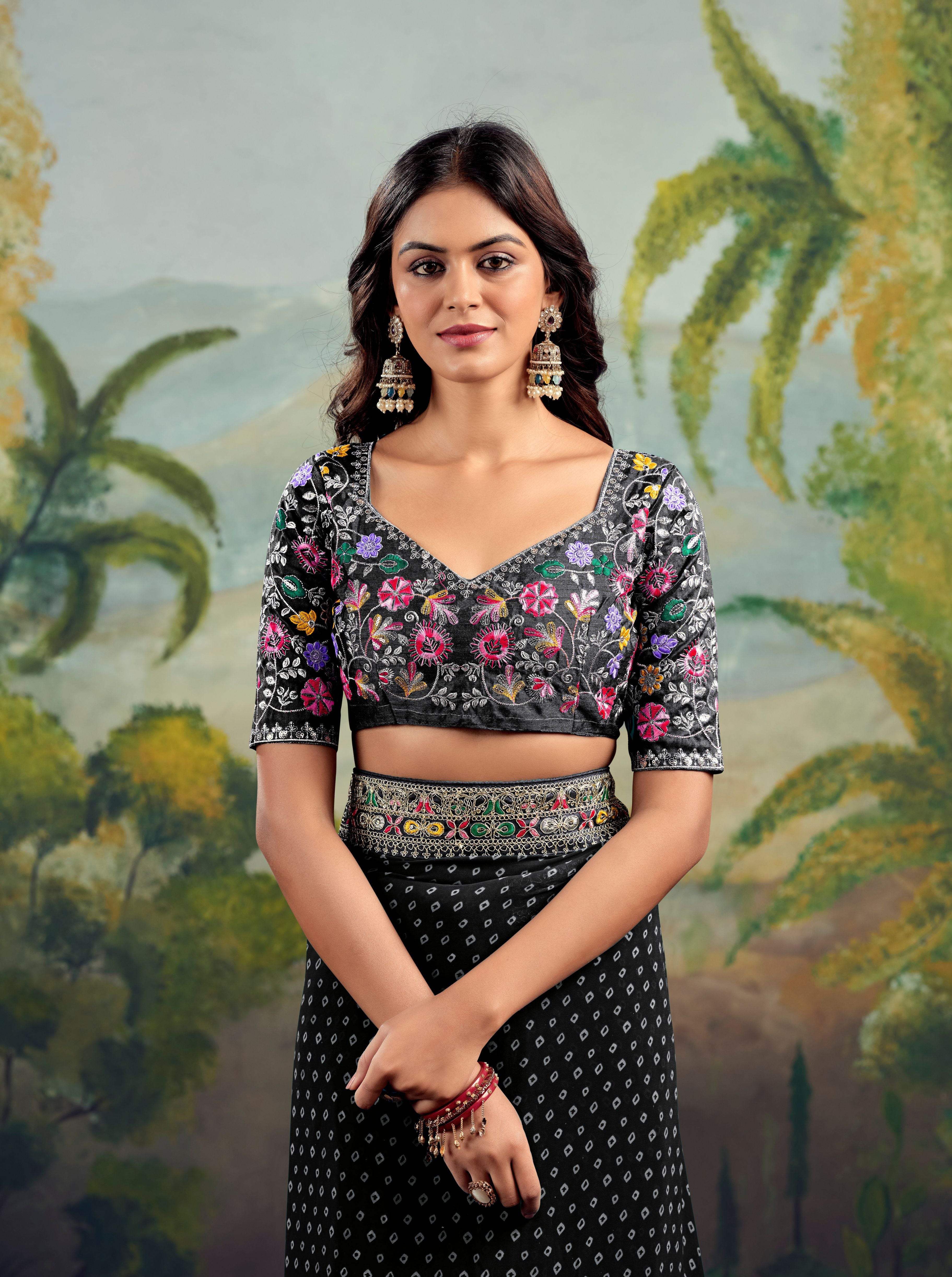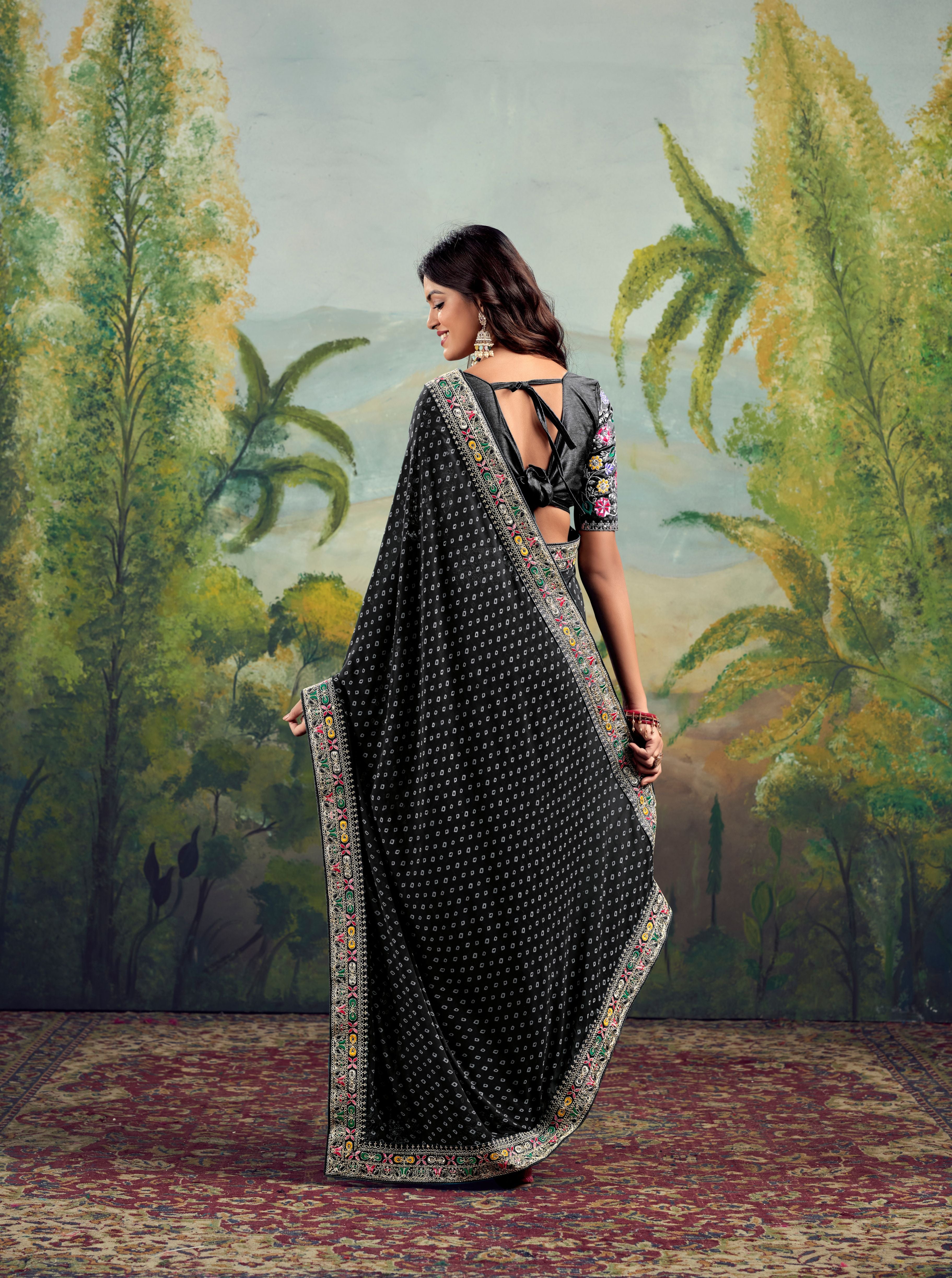 The rich texture of raw silk lends a subtle sheen and structured fall, enhancing the saree’s overall sophistication. Designed to complement the simplicity of the saree, the accompanying blouse features intricate embroidery, adding a touch of grandeur and artisanal finesse. The detailed craftsmanship on the blouse creates a striking contrast, making it a standout piece that elevates the entire ensemble.