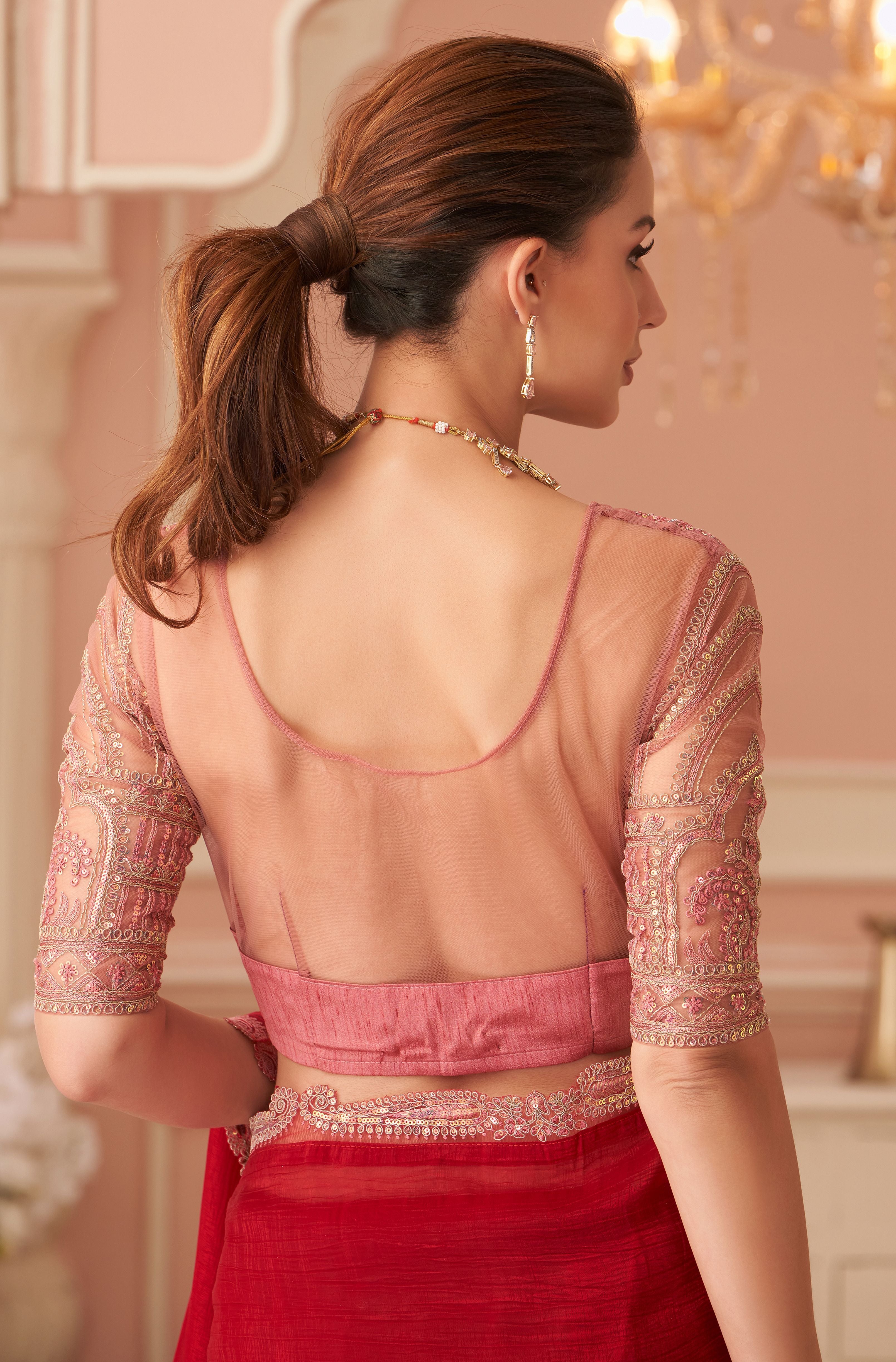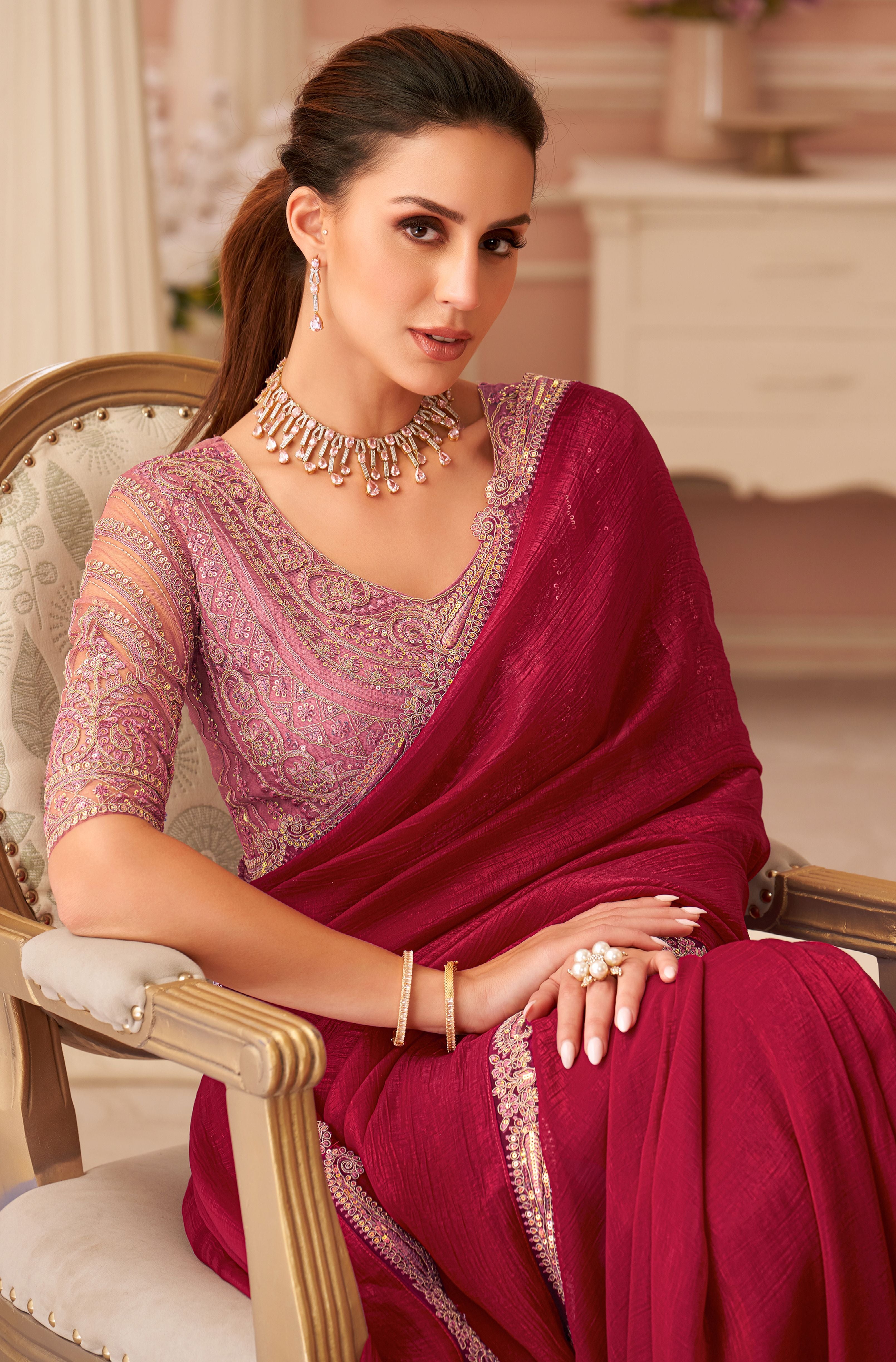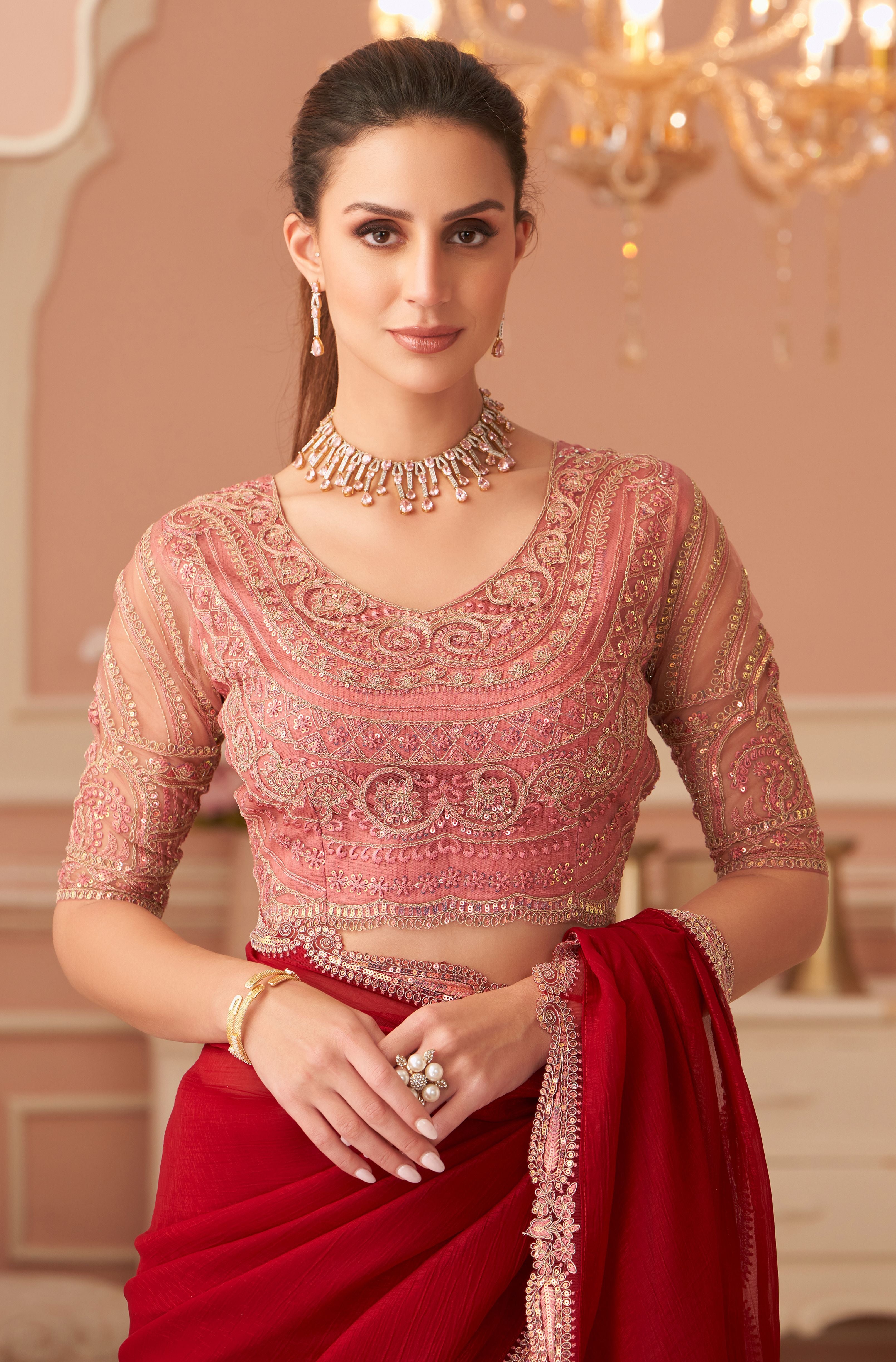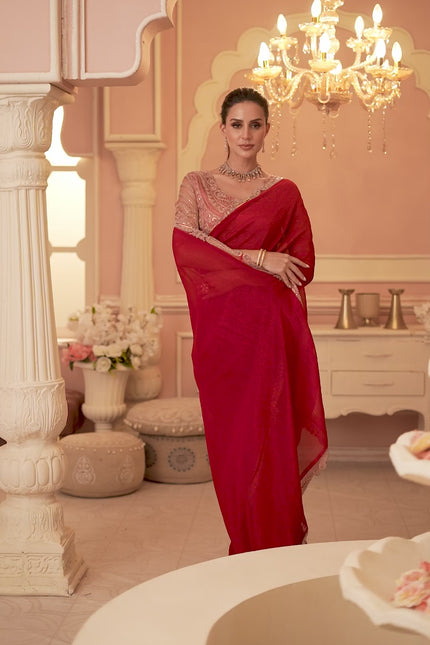 Red Solid Poly Georgette Saree with Poly Georgette Blouse