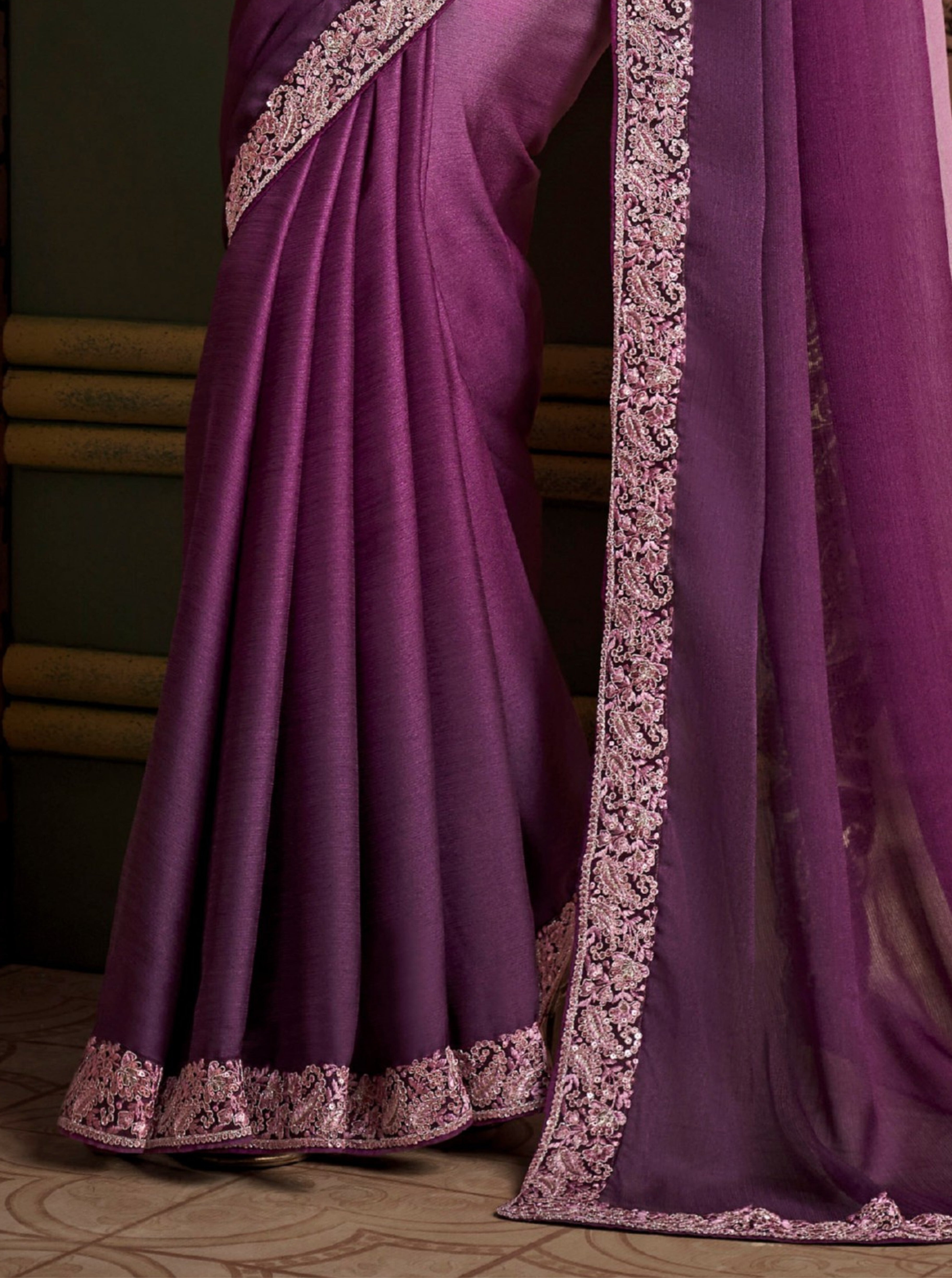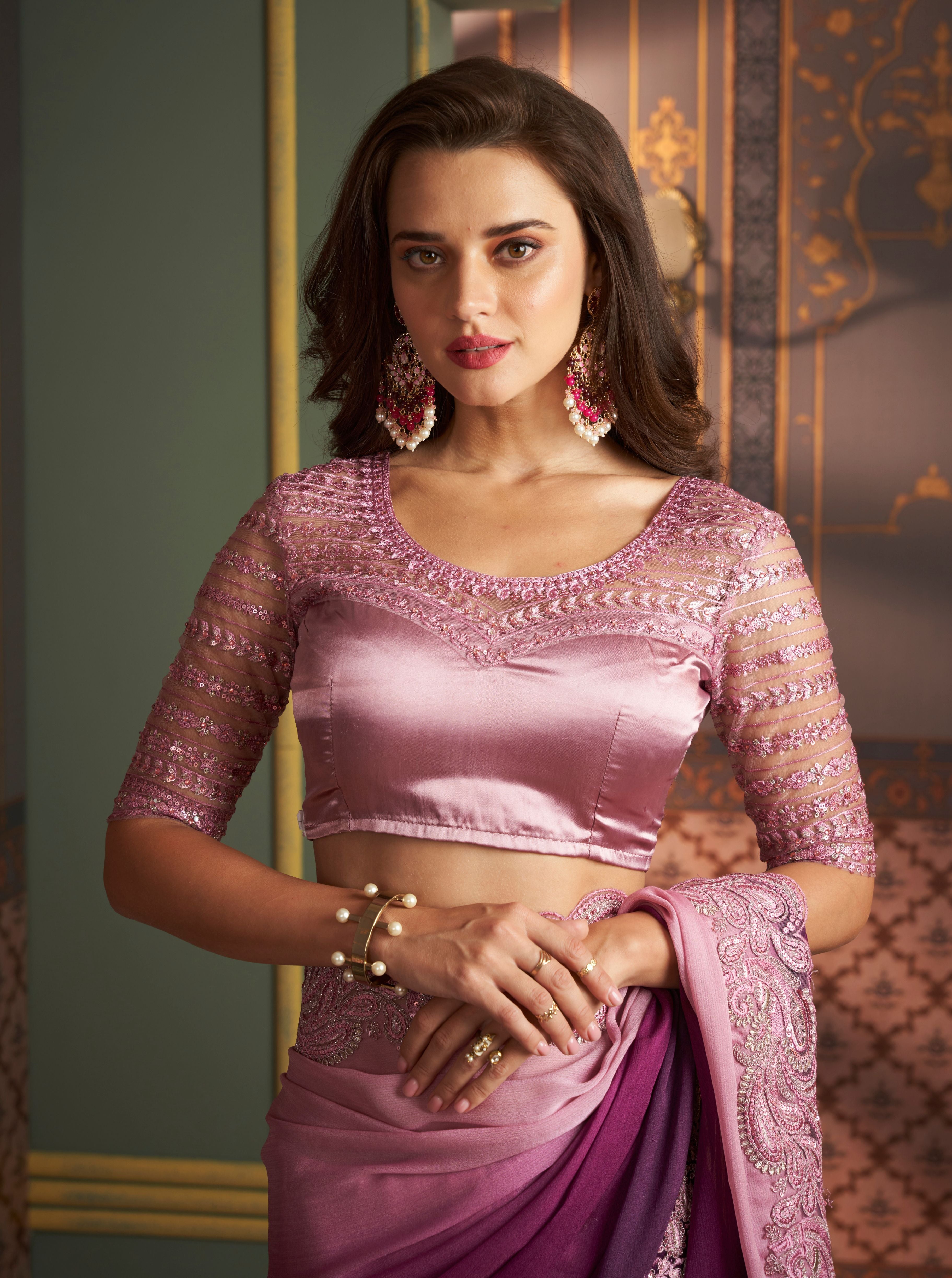 Violet Solid Poly Silk Saree with Satin Blouse